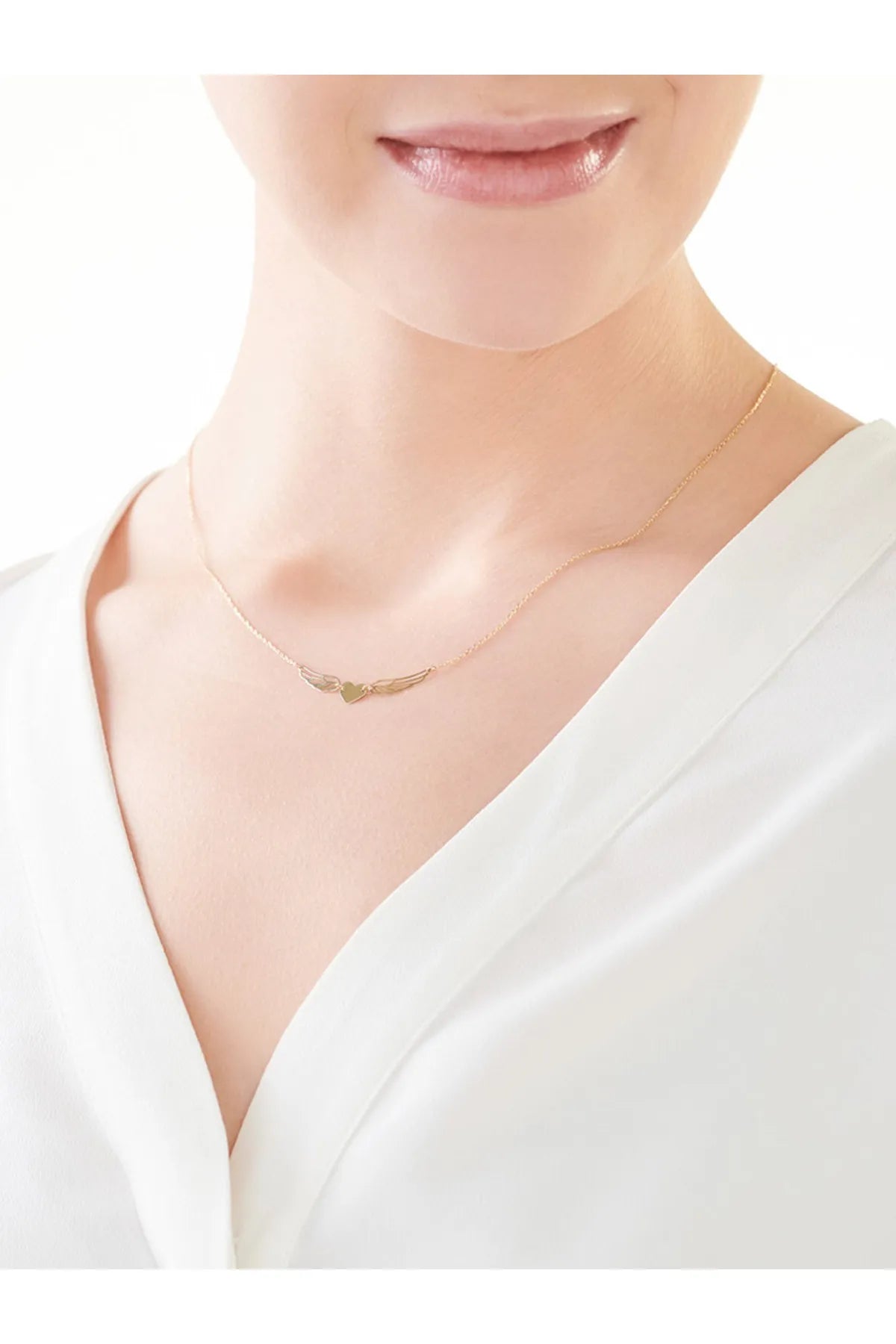 Minimal Kolye Altin Kanatlı Kalp Kolye "anael"