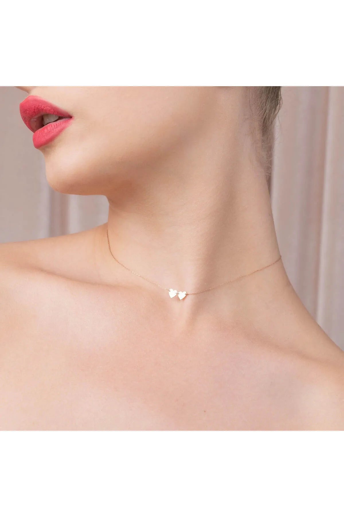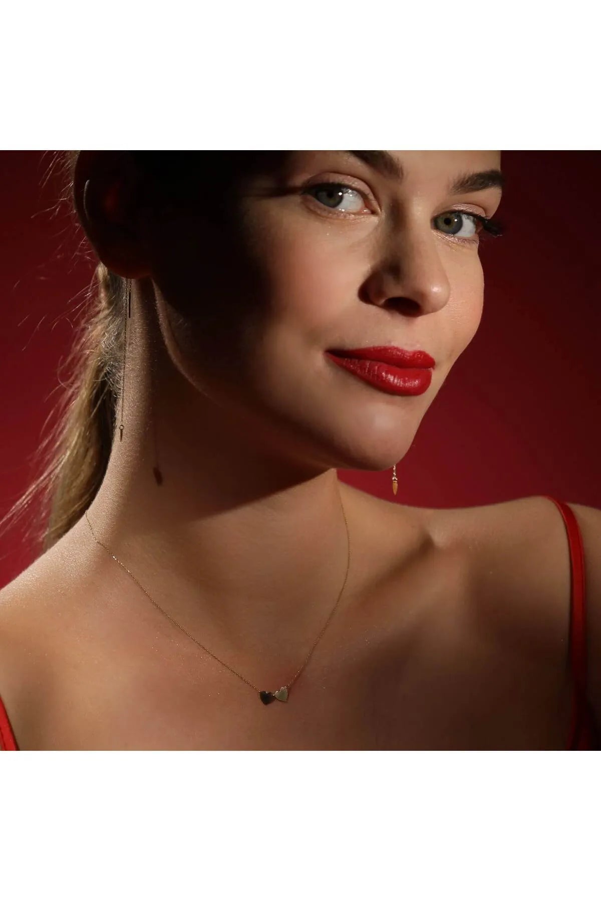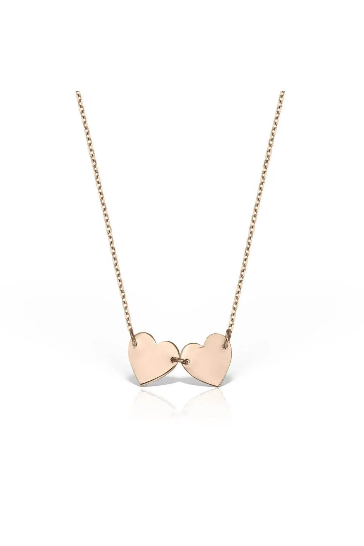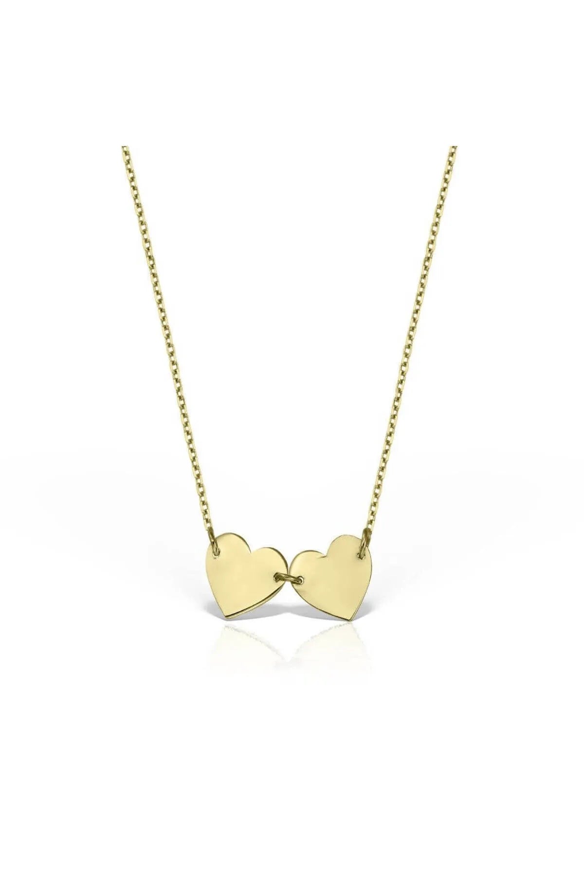 14 ayar sarı altın,birbirine takılı 2 kalpli altın zincir kolye