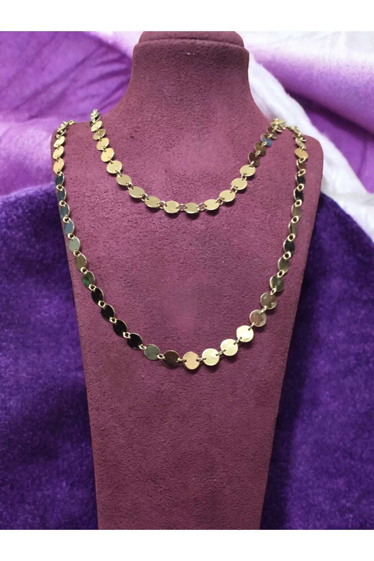 - 14 ayar sarı altın,42 cm e denk gelecek sayıda full plakalı altın zincir kolye