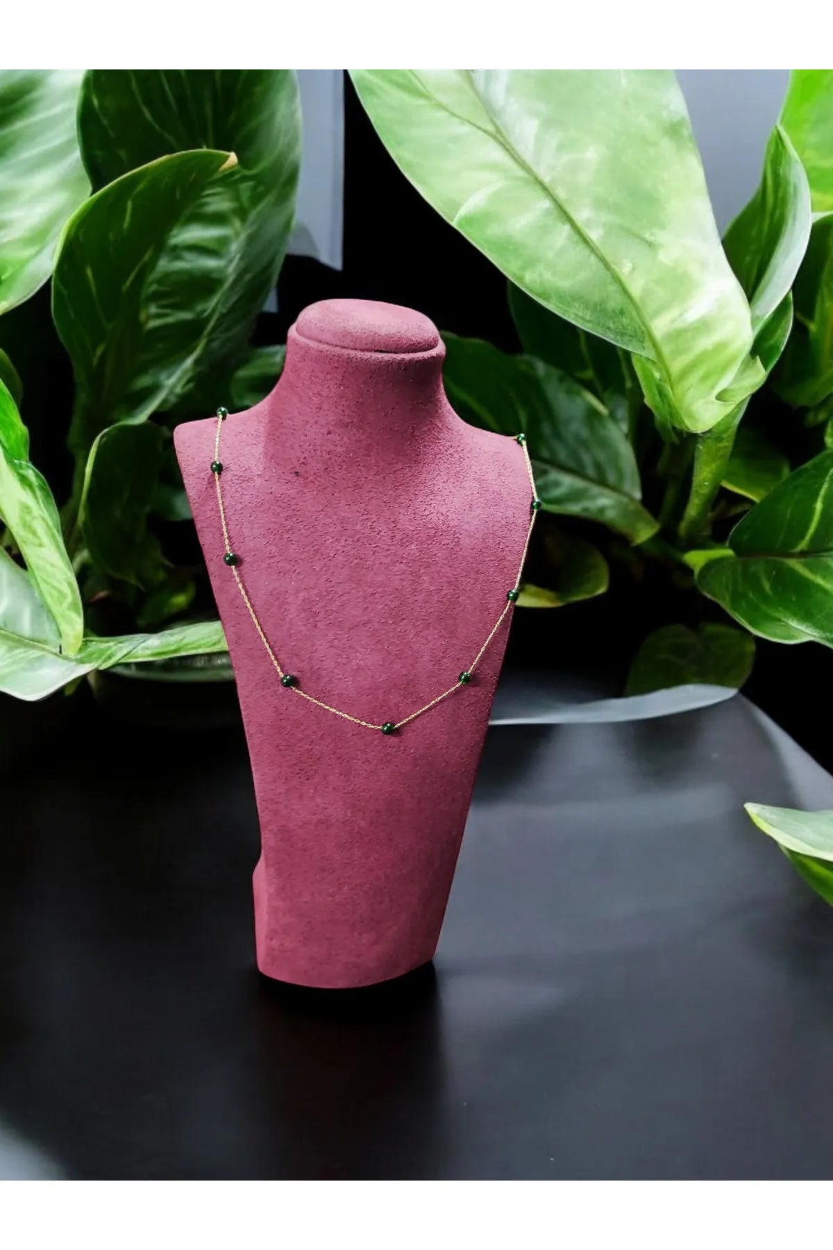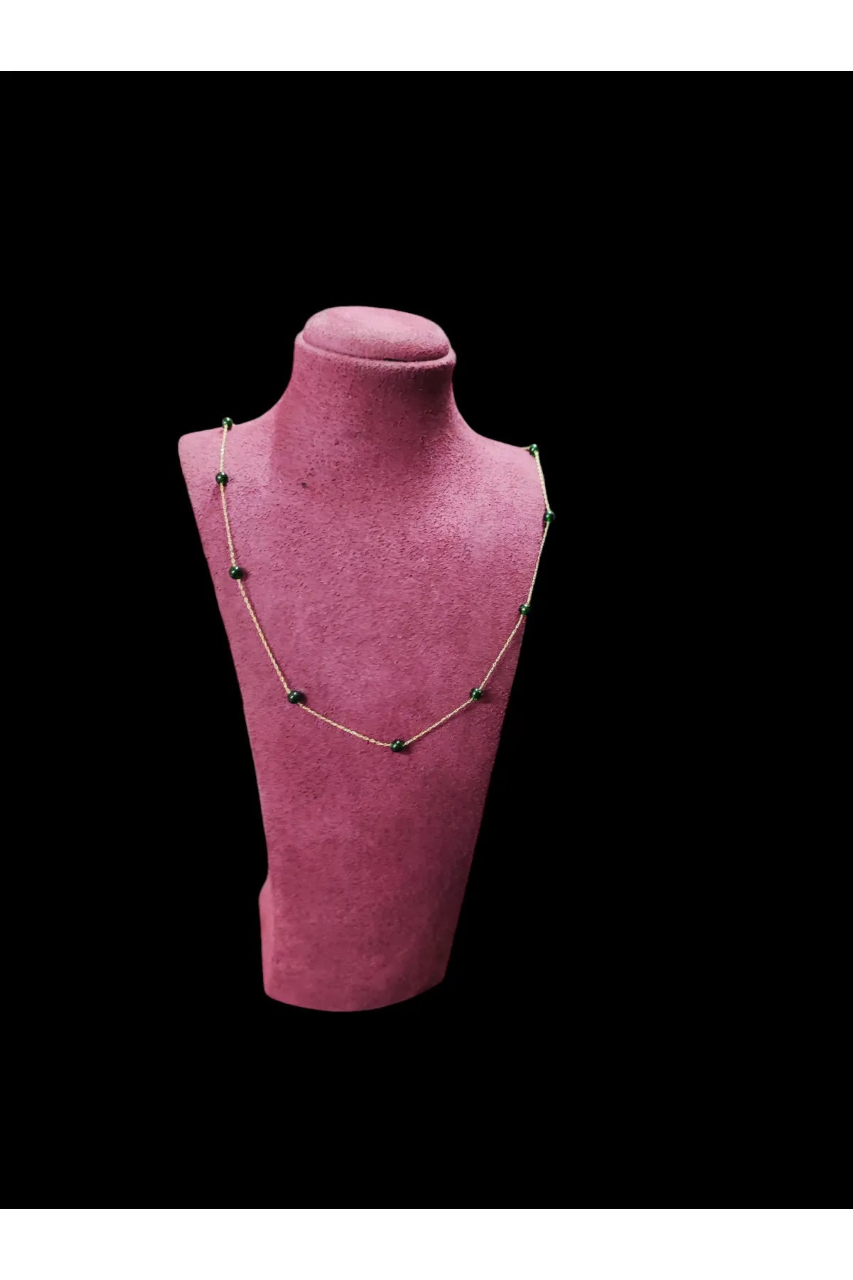 - 14 ayar sarı altın,15 adet yeşil taşlı altın zincir kolye