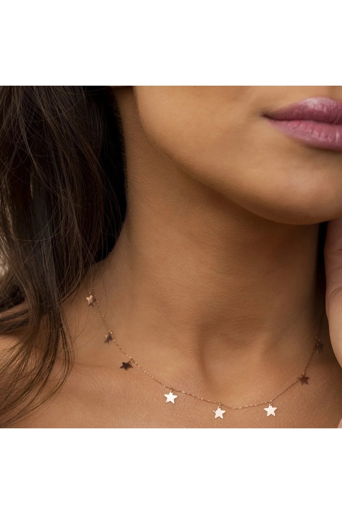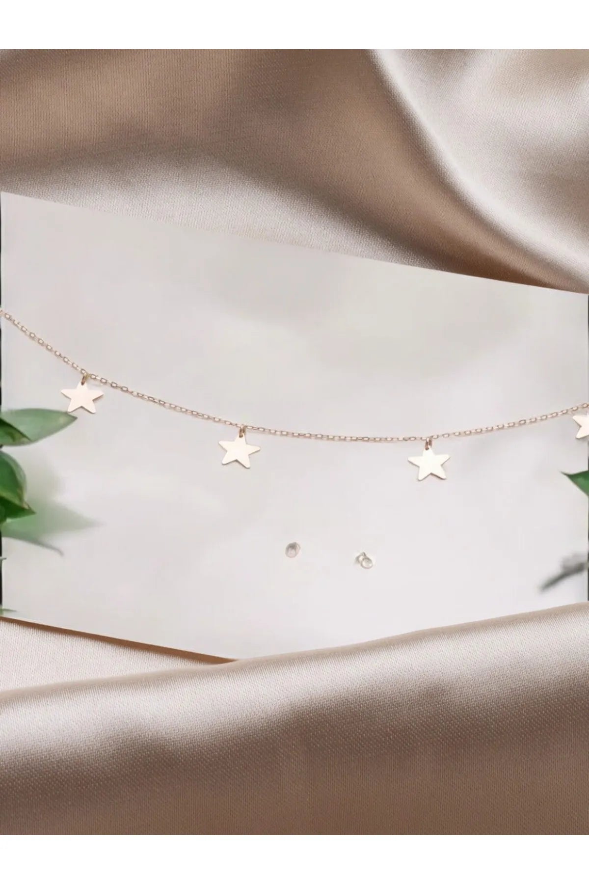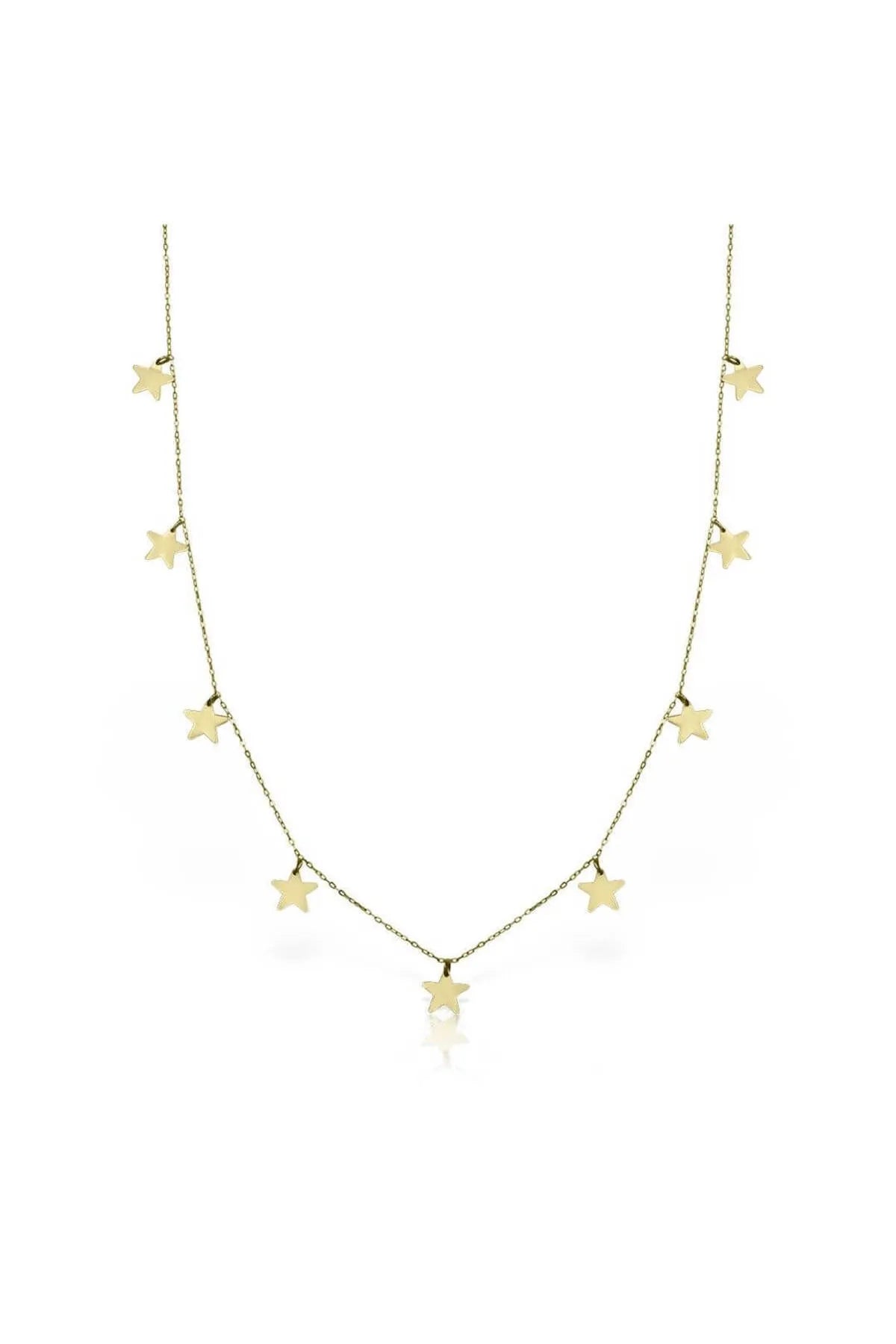 14 ayar sarı altın, sallantılı 9 yıldızlı altın zincir