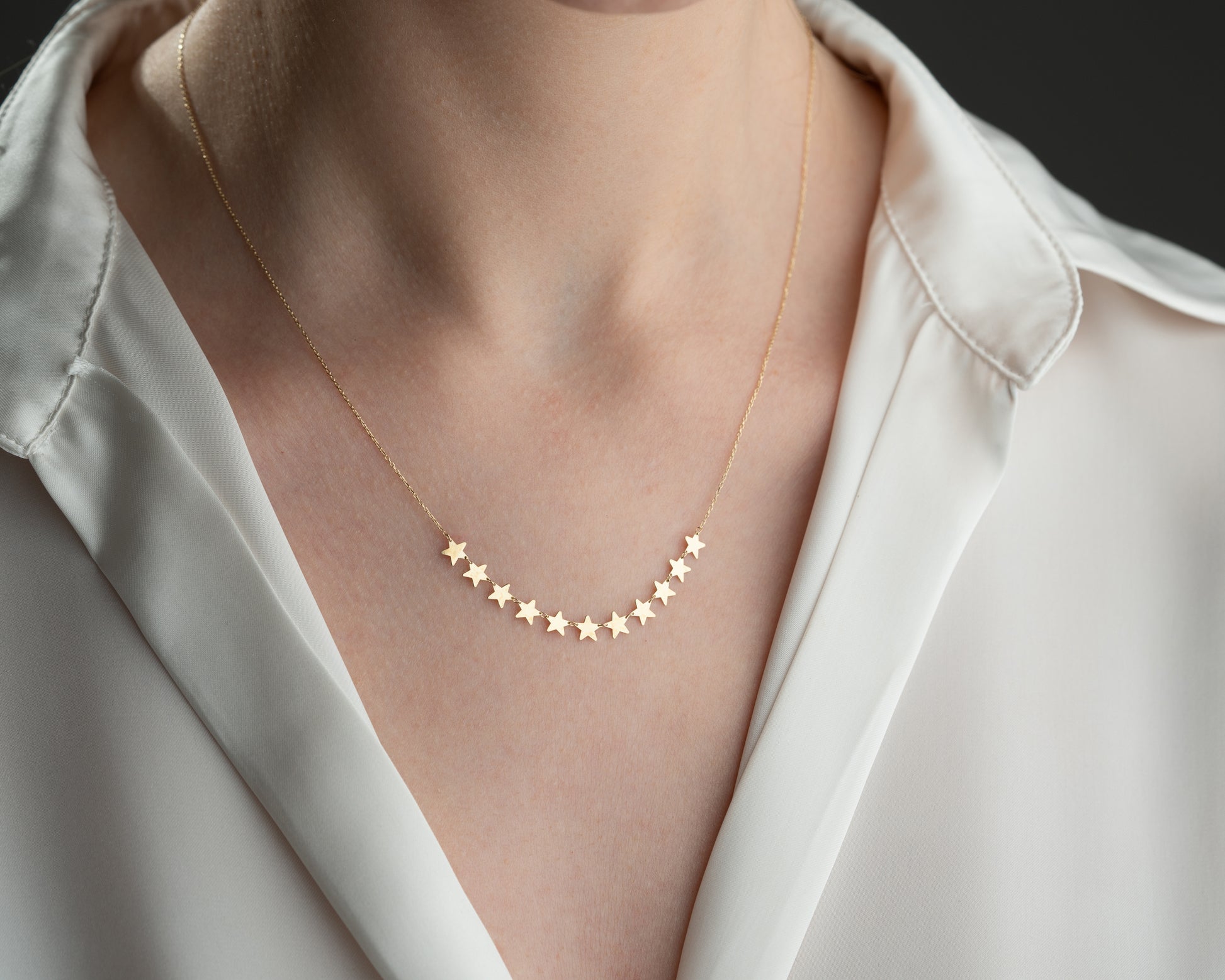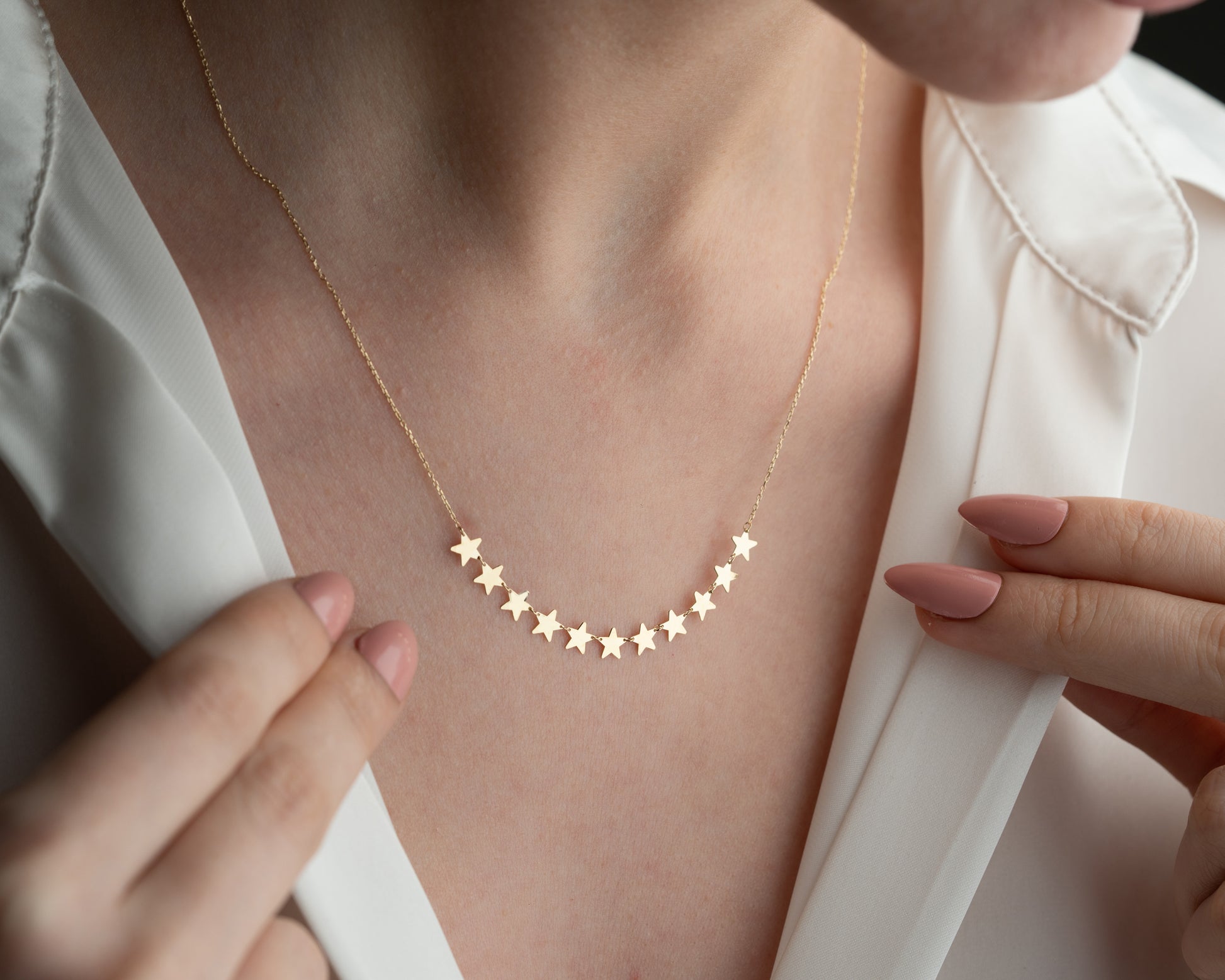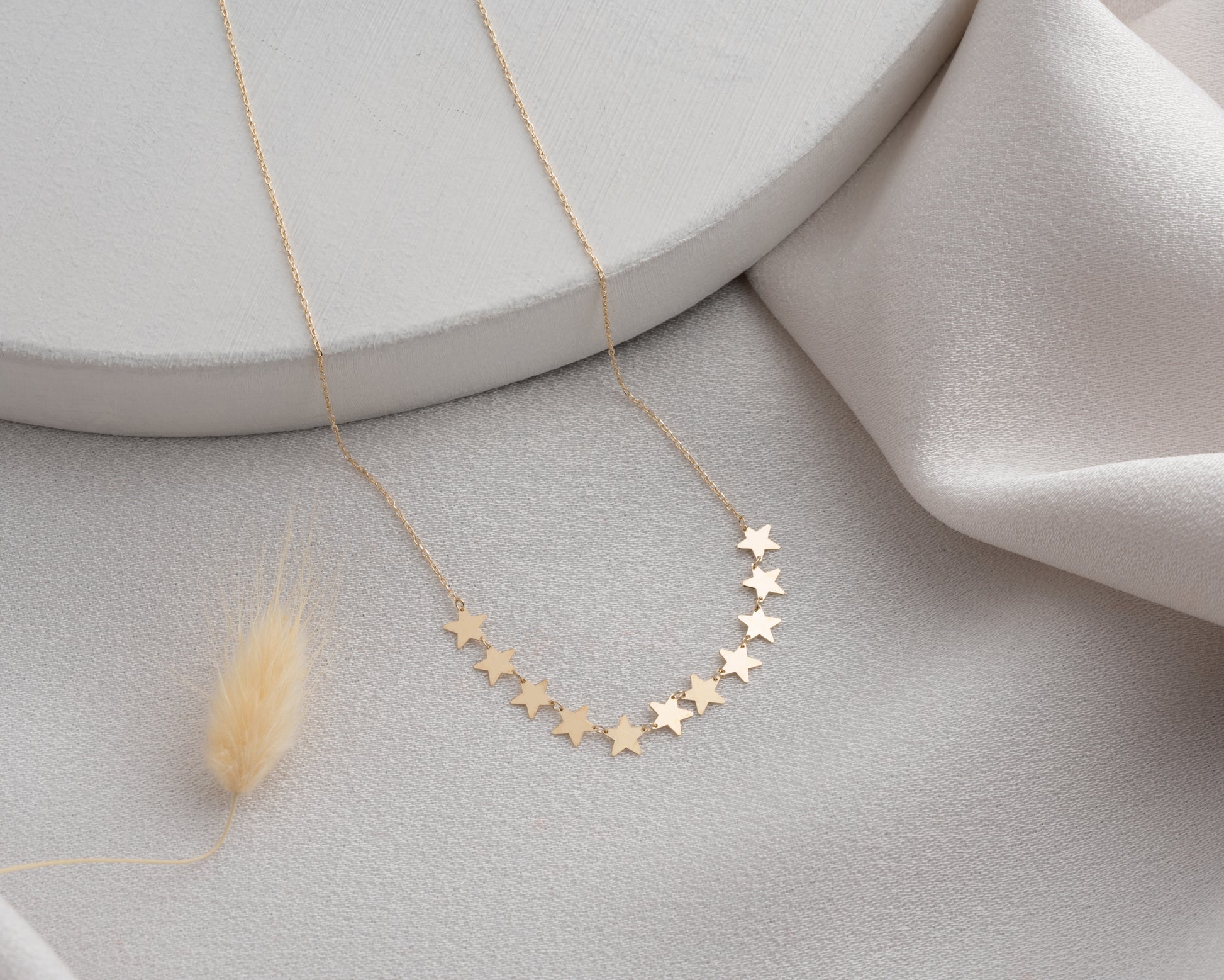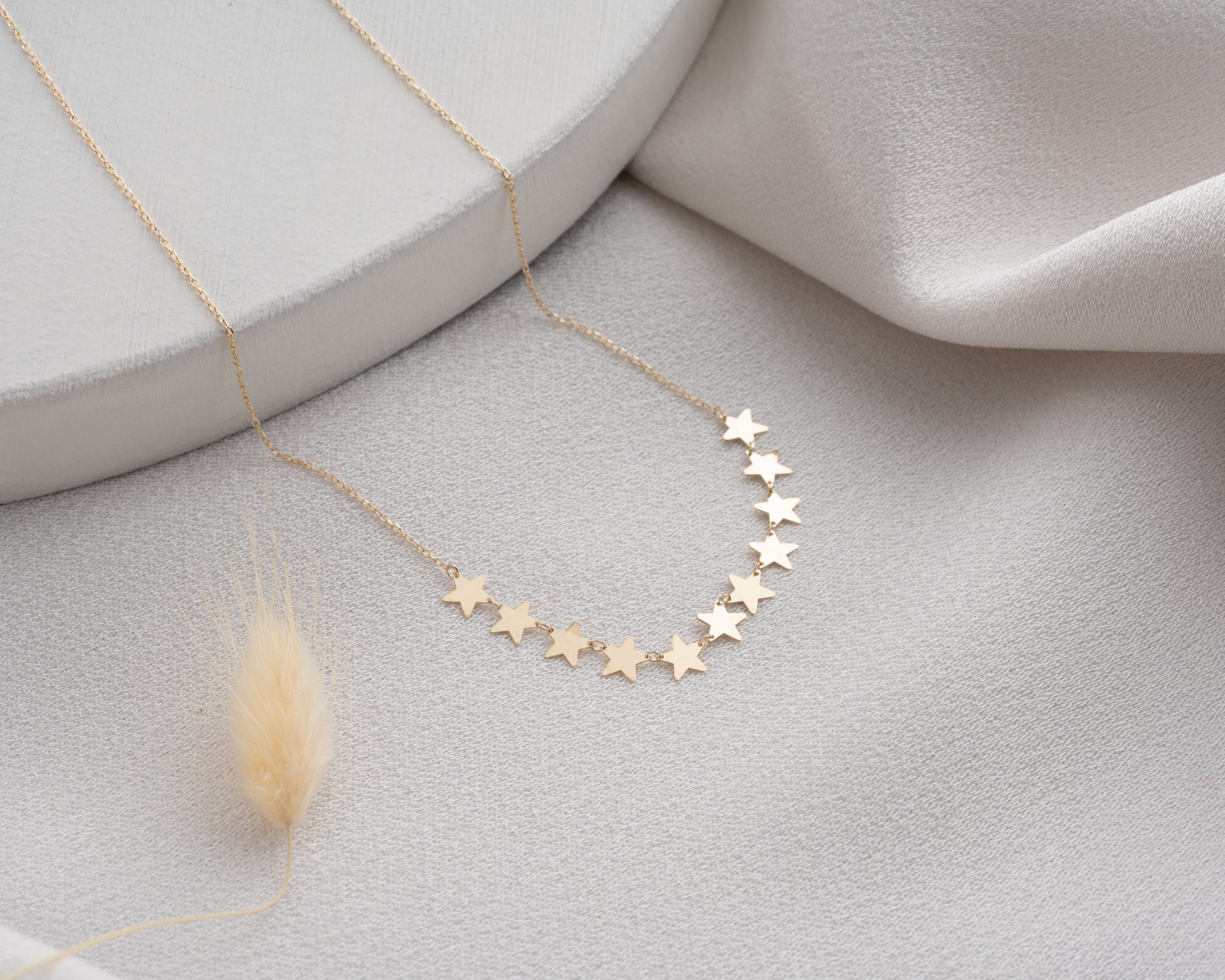 11 Yıldız Figürlü 14 Ayar Altın Kolye Minimal ve Işıltılı Altın Takı "Stella-11"