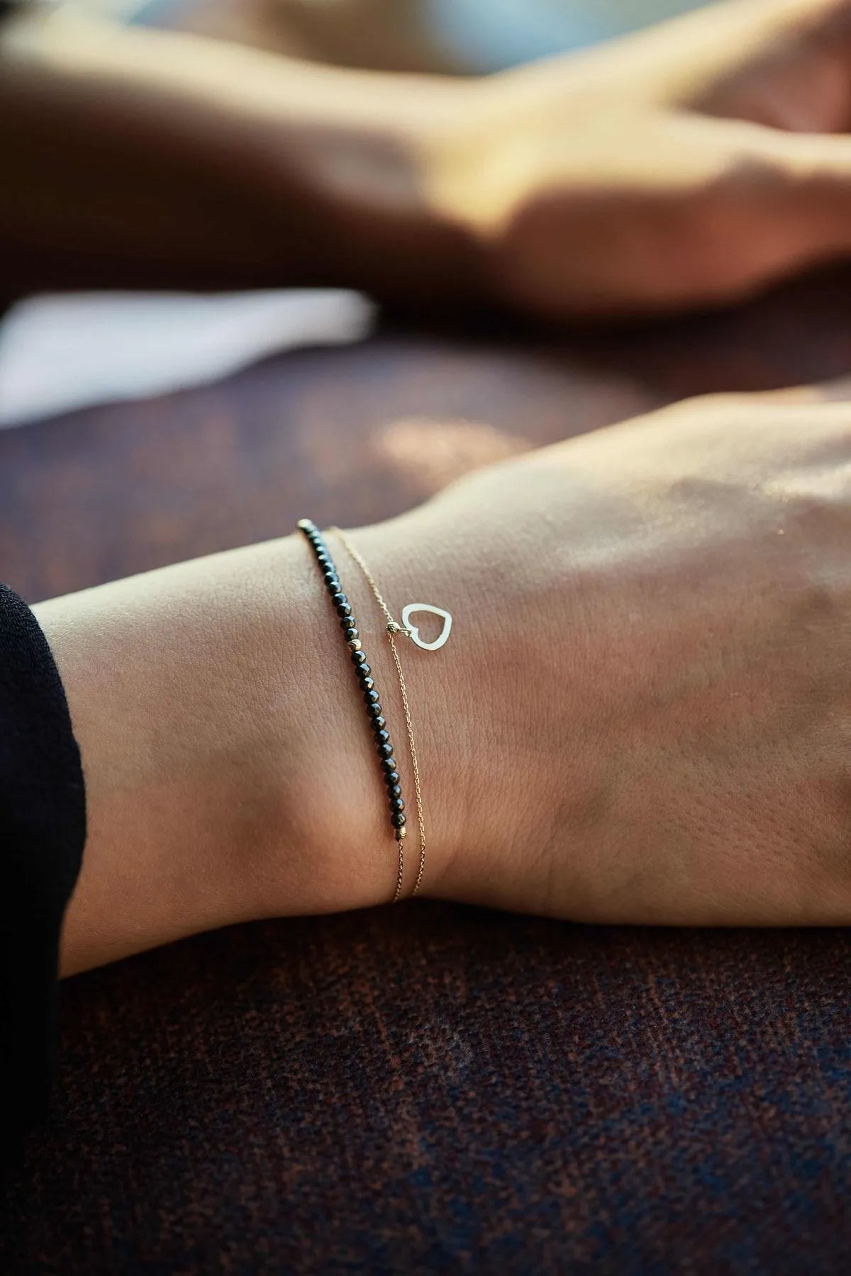 14 Ayar Altın Bileklik Hematit Taşlı Kalp Detaylı