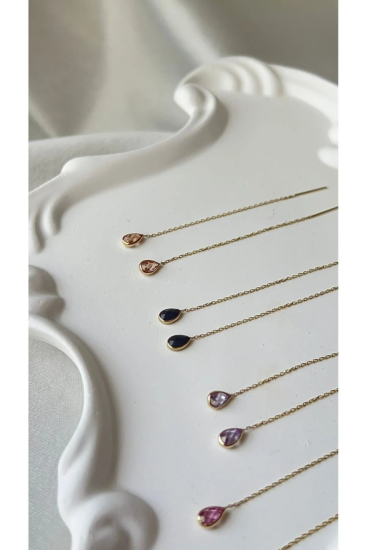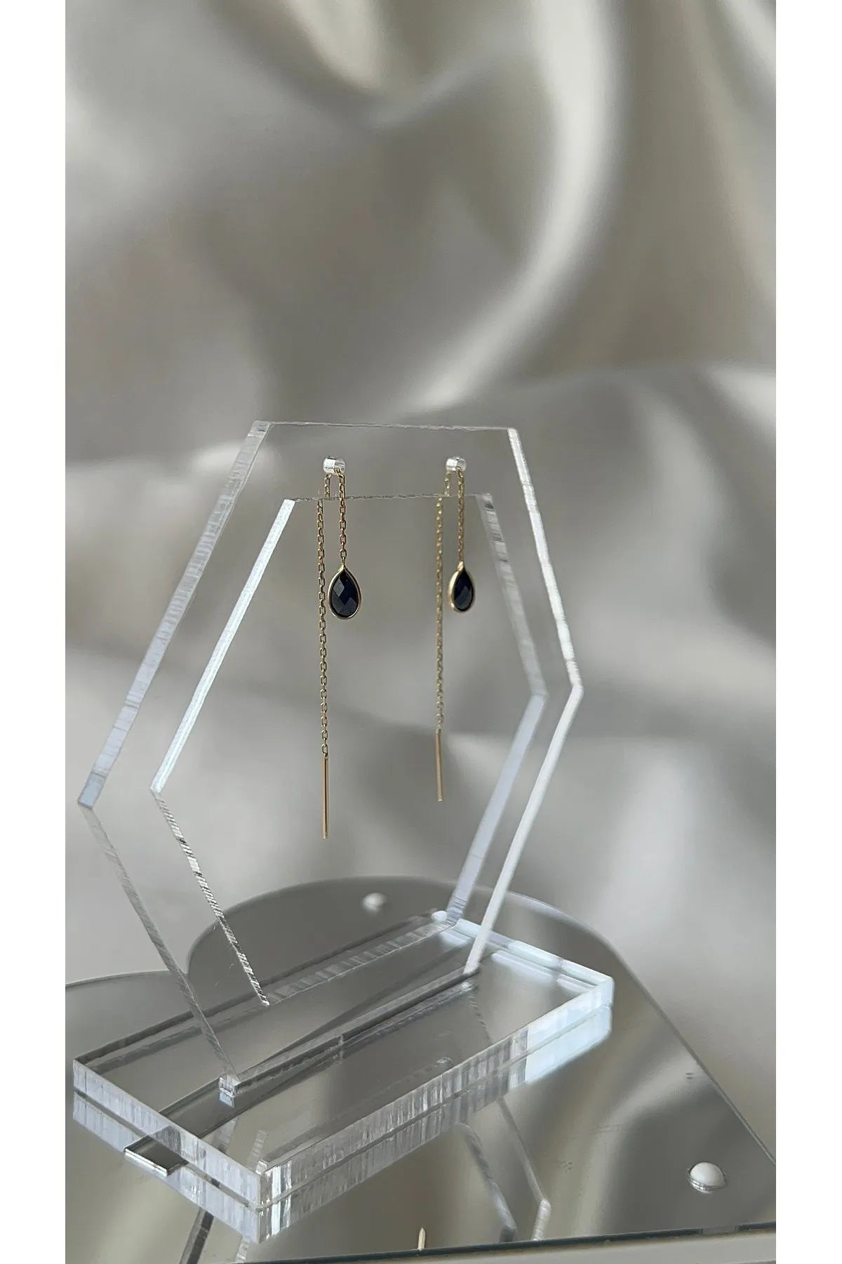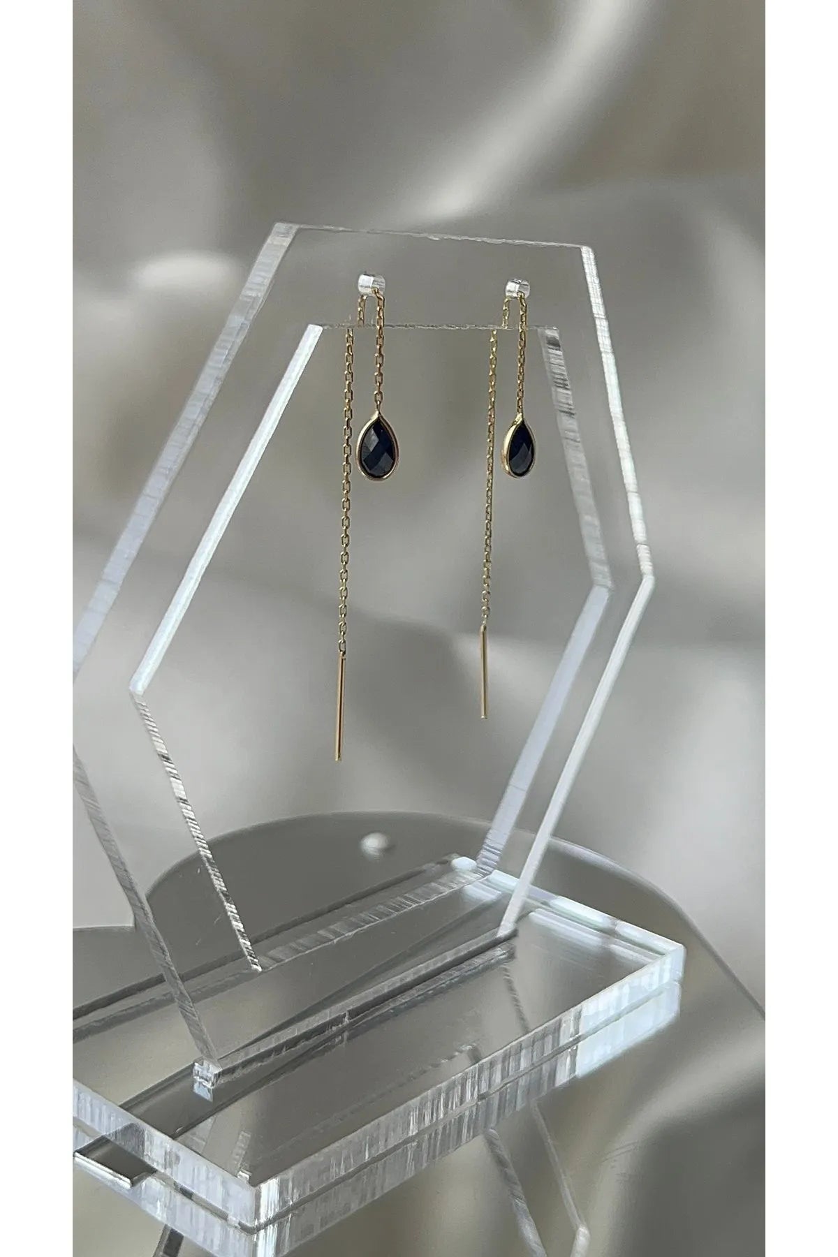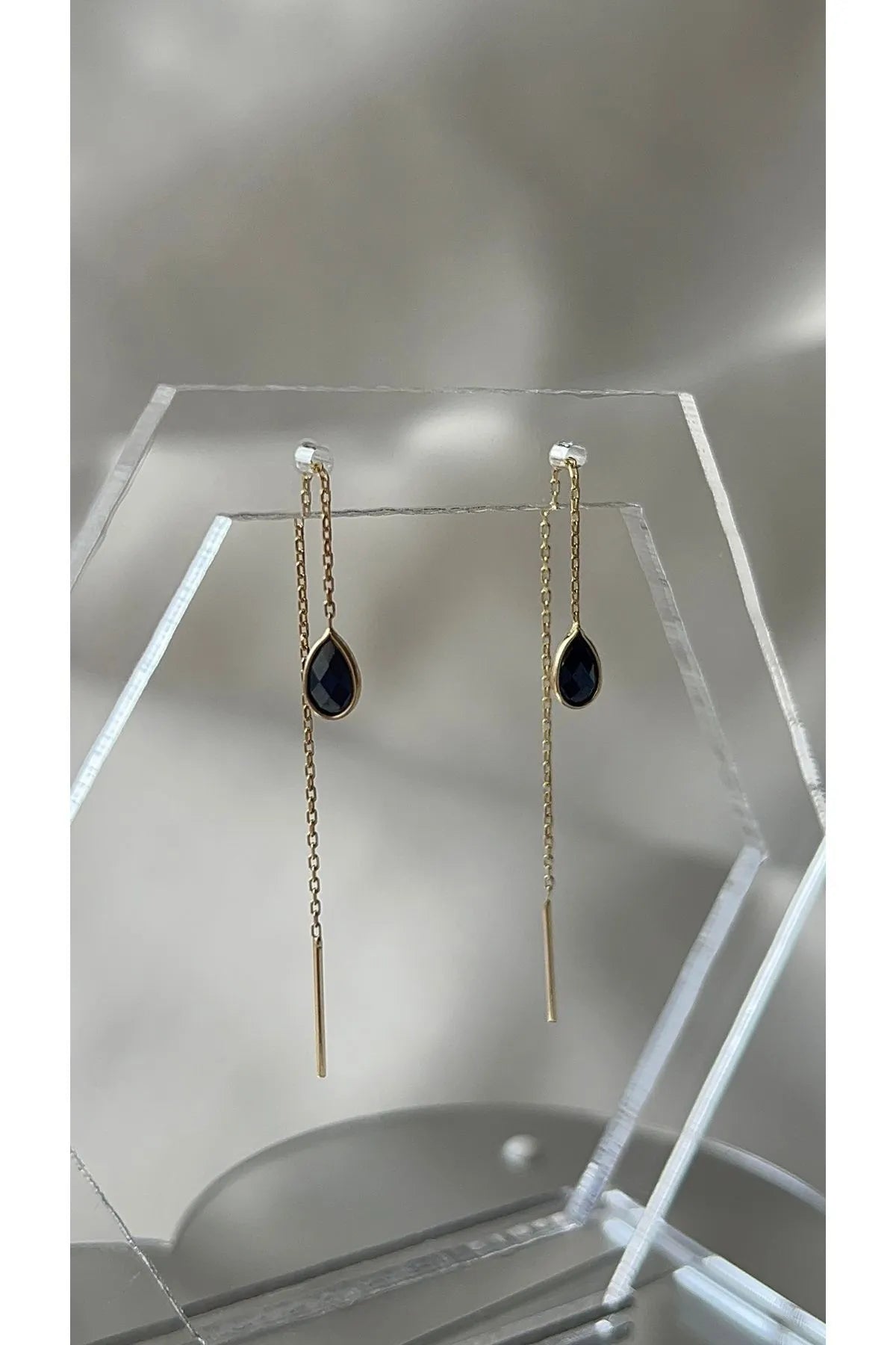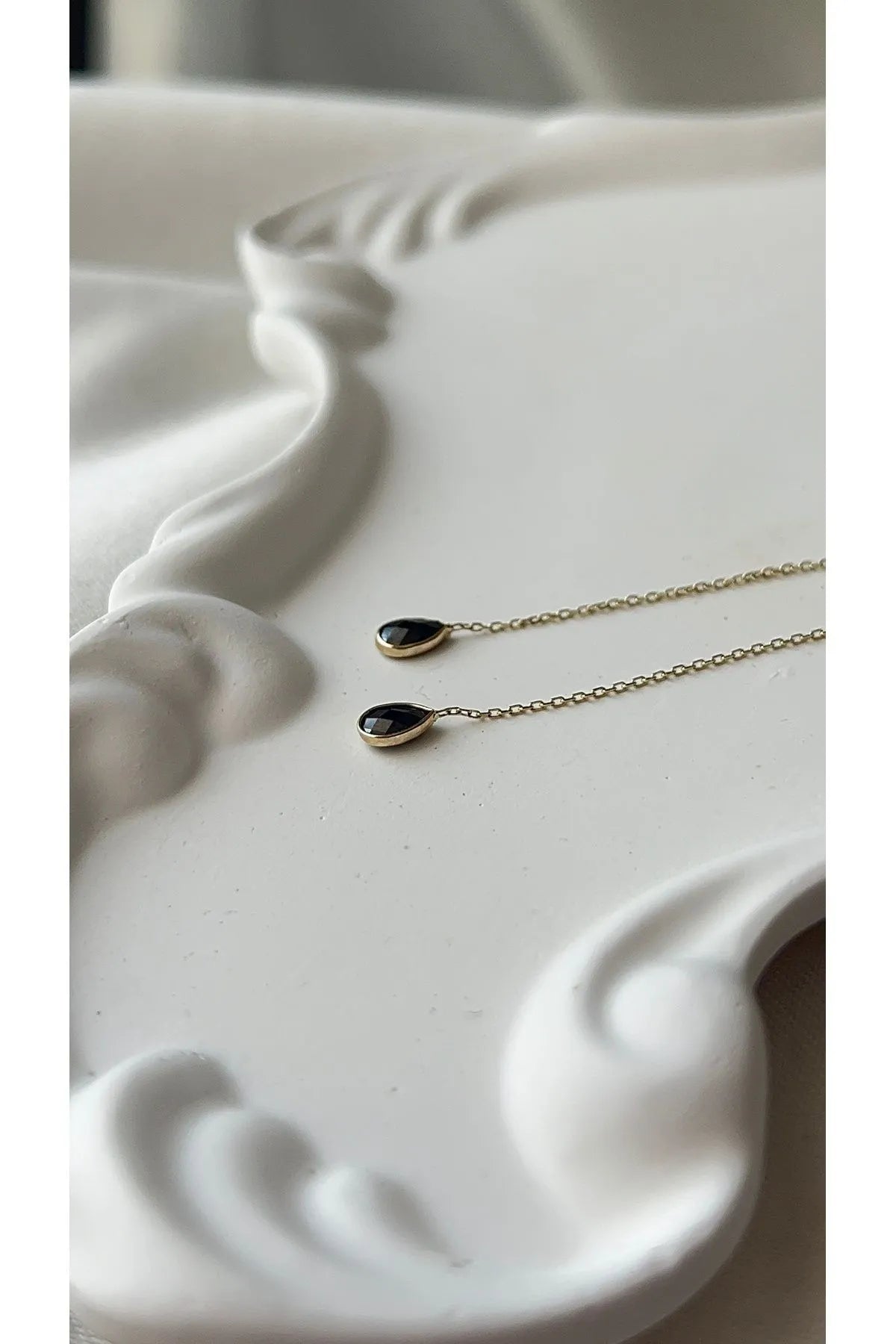 14 Ayar Altın Küpe Damla Taşlı (SİYAH)