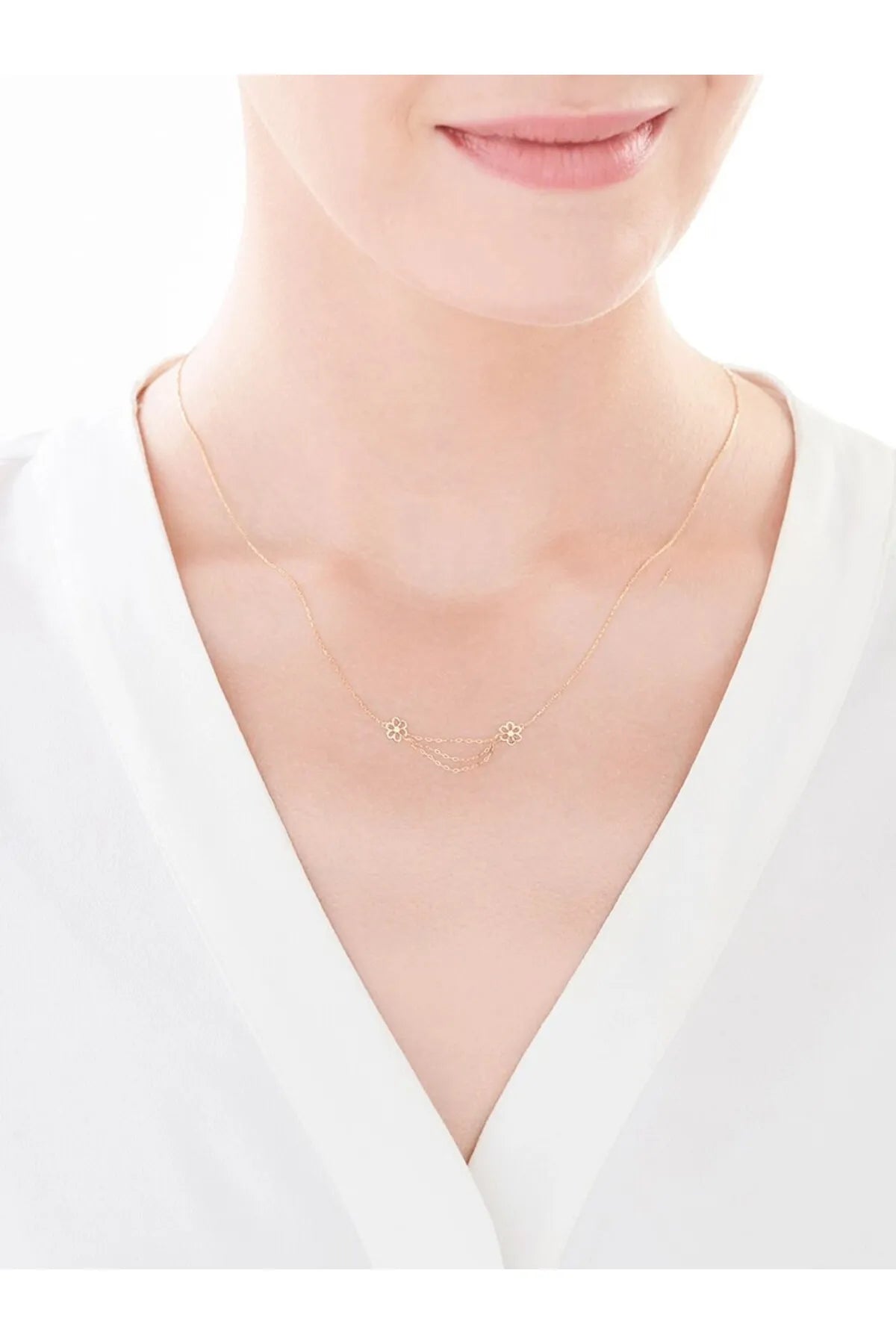 - 14 ayar sarı altın, Altın Çicek 3 sıralı zincir kolye