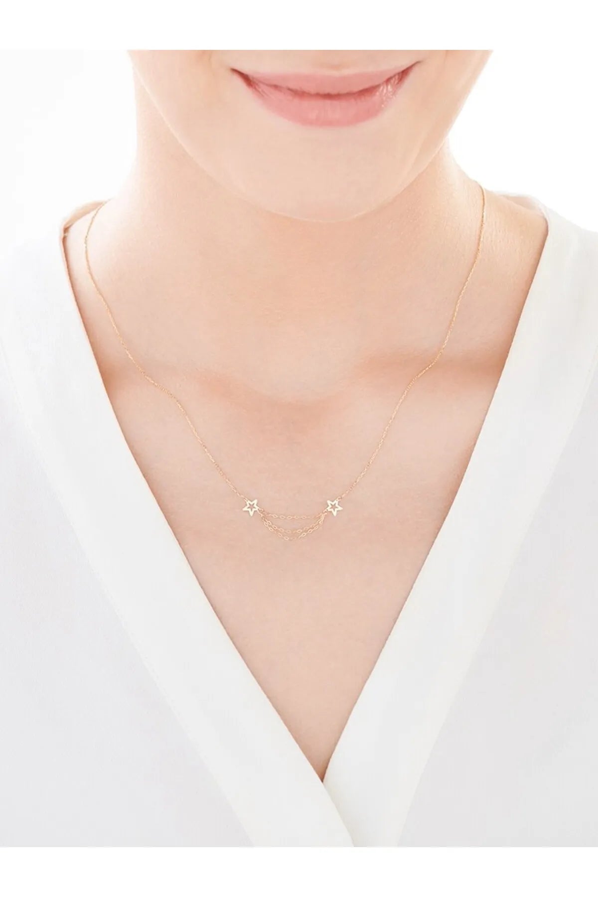 Altın Yıldızlı 3 Lü Zincir Kolye "gwiazdy"