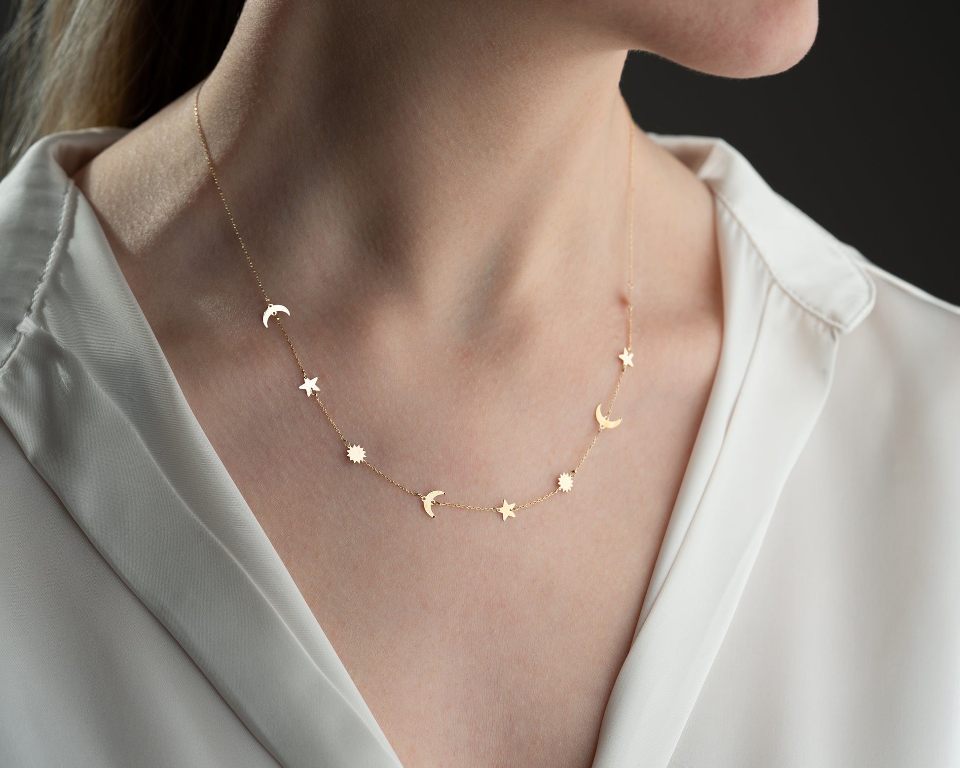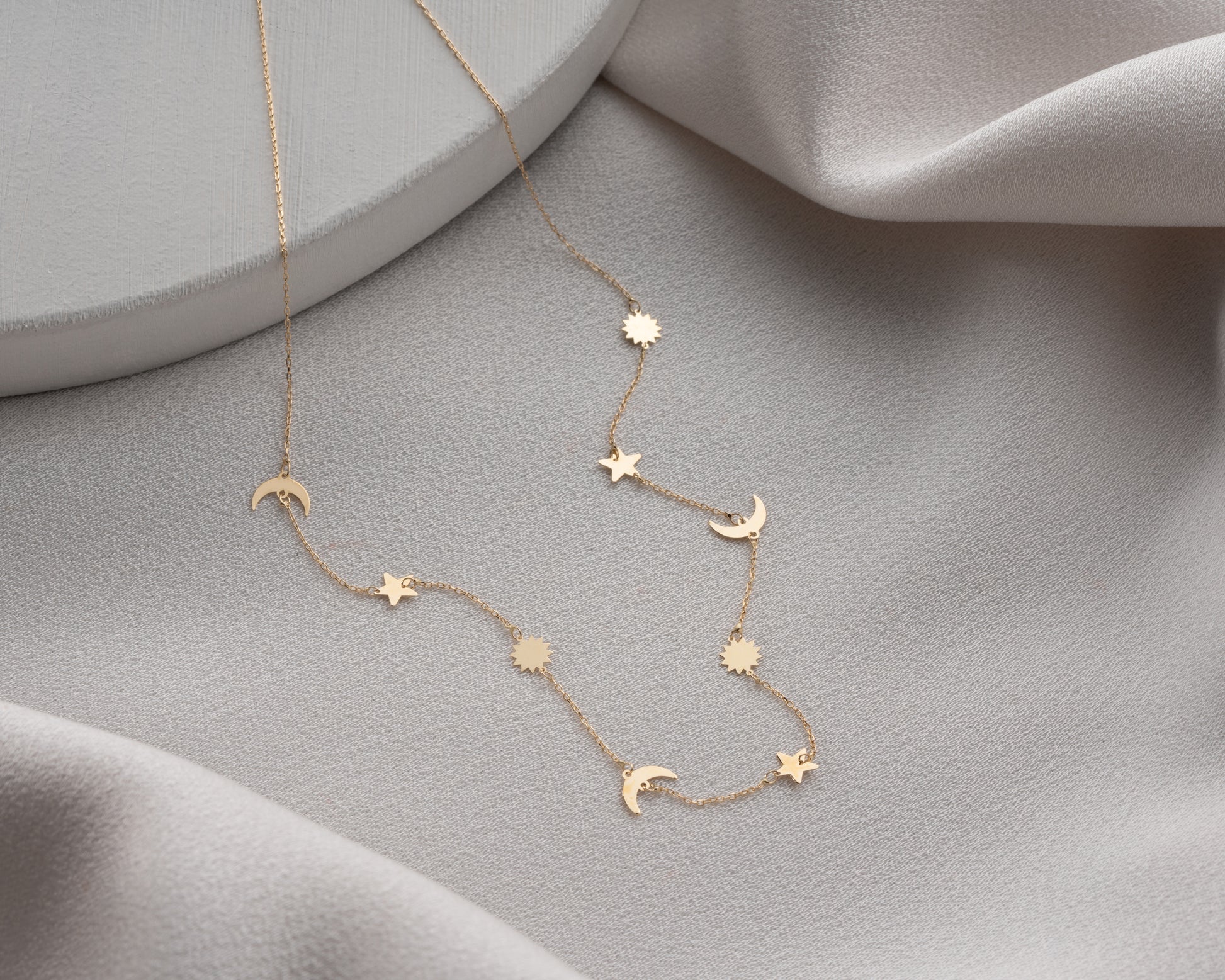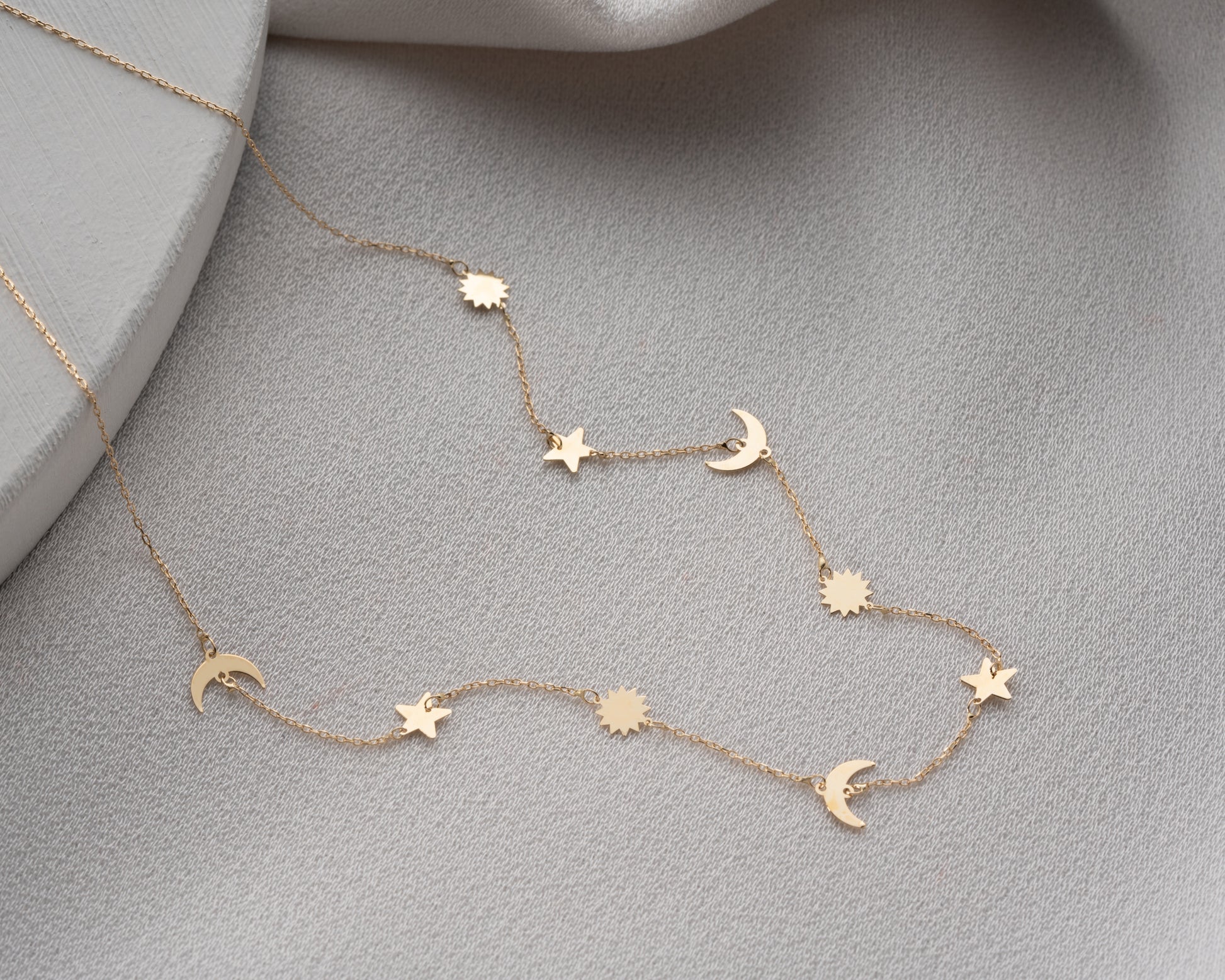 Altın Ay Yıldız Güneş Galaxy Kolye