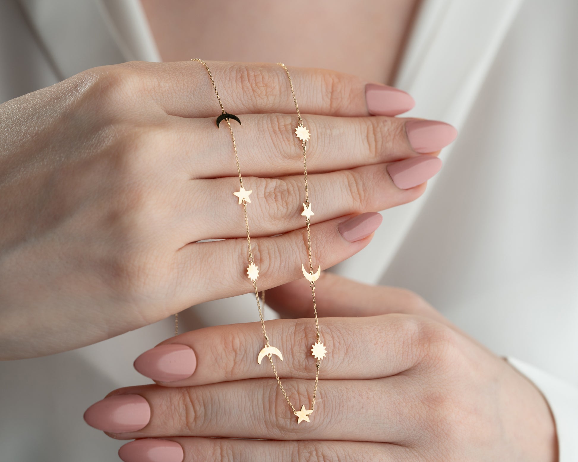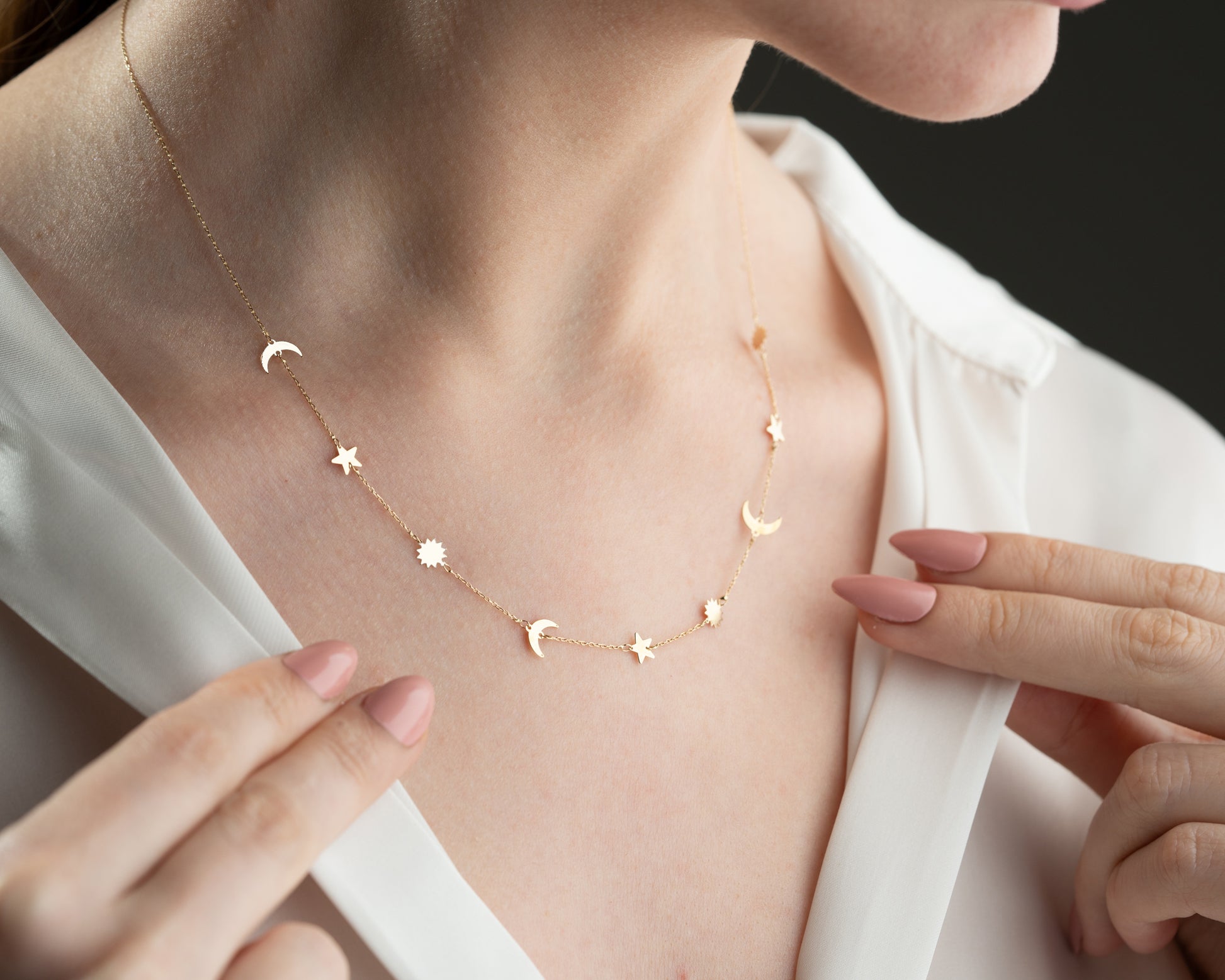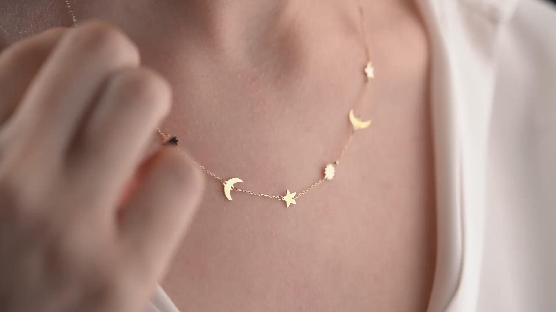 Altın Ay Yıldız Güneş Galaxy Kolye