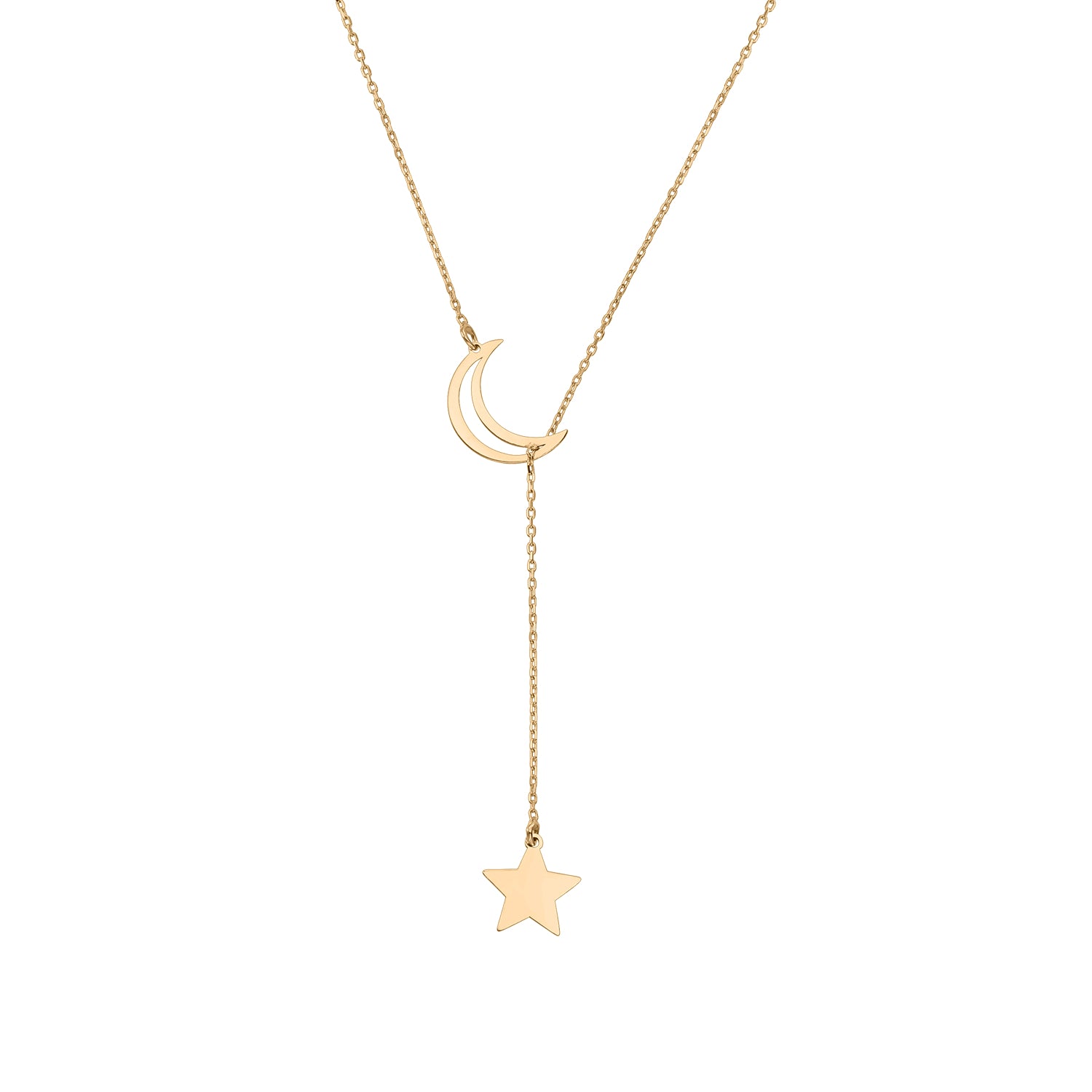 - 14 ayar sarı altın, sallantılı ay yıldız altın zincir kolye