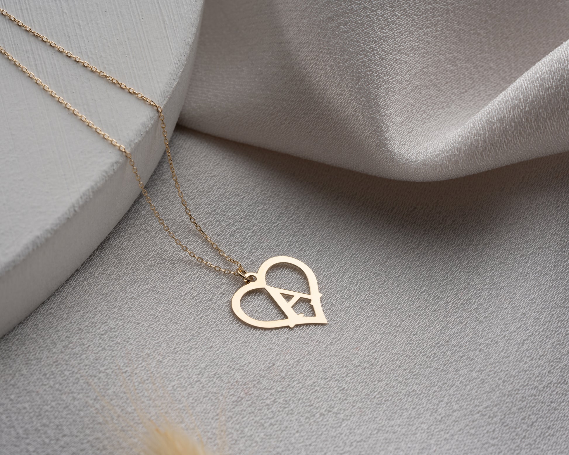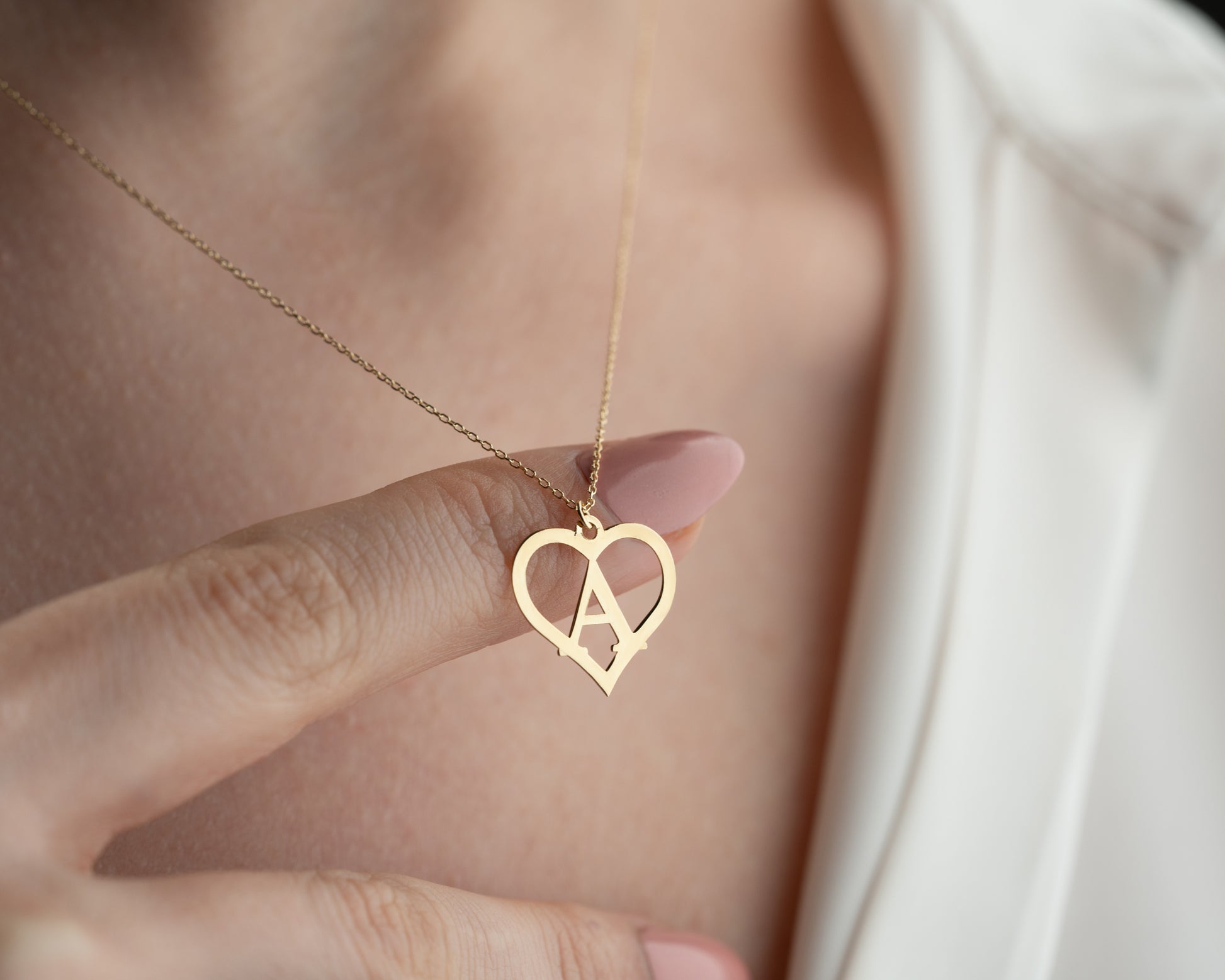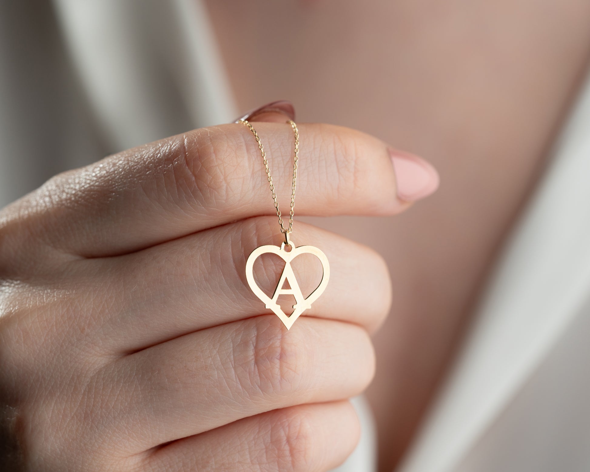 14 Ayar Altın Harfli Kalp Kolye – Minimal Zarif Altın Kolye, El Yapımı