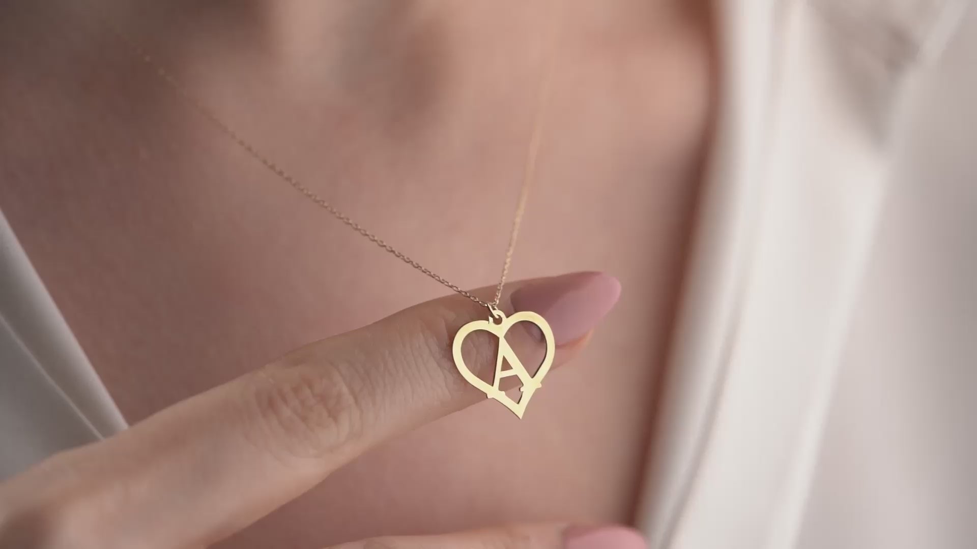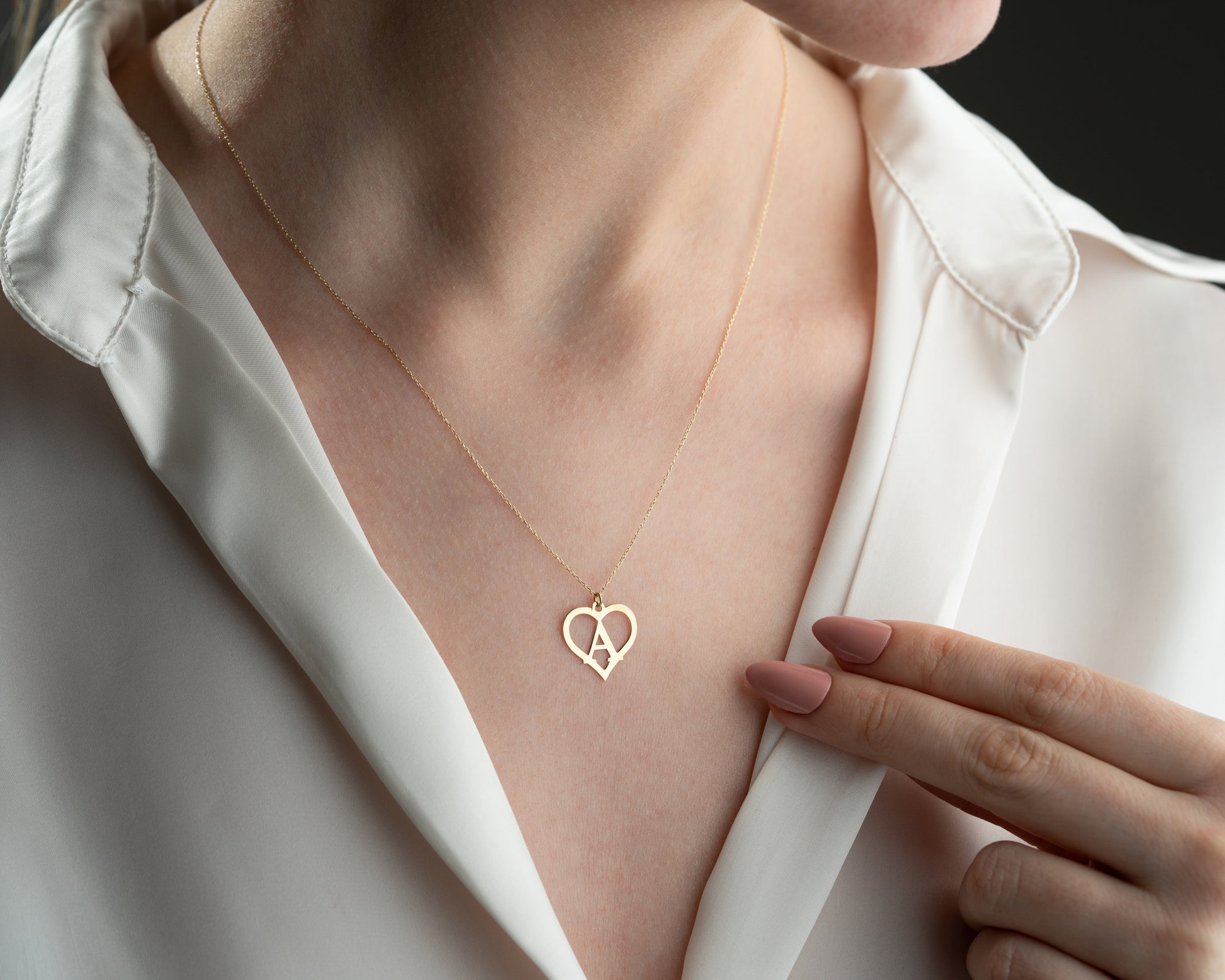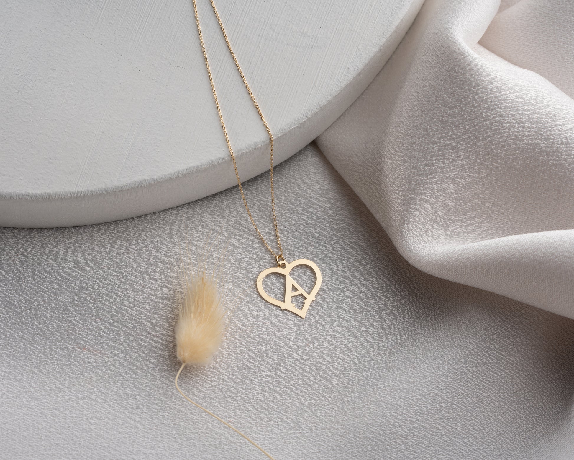 14 Ayar Altın Harfli Kalp Kolye – Minimal Zarif Altın Kolye, El Yapımı