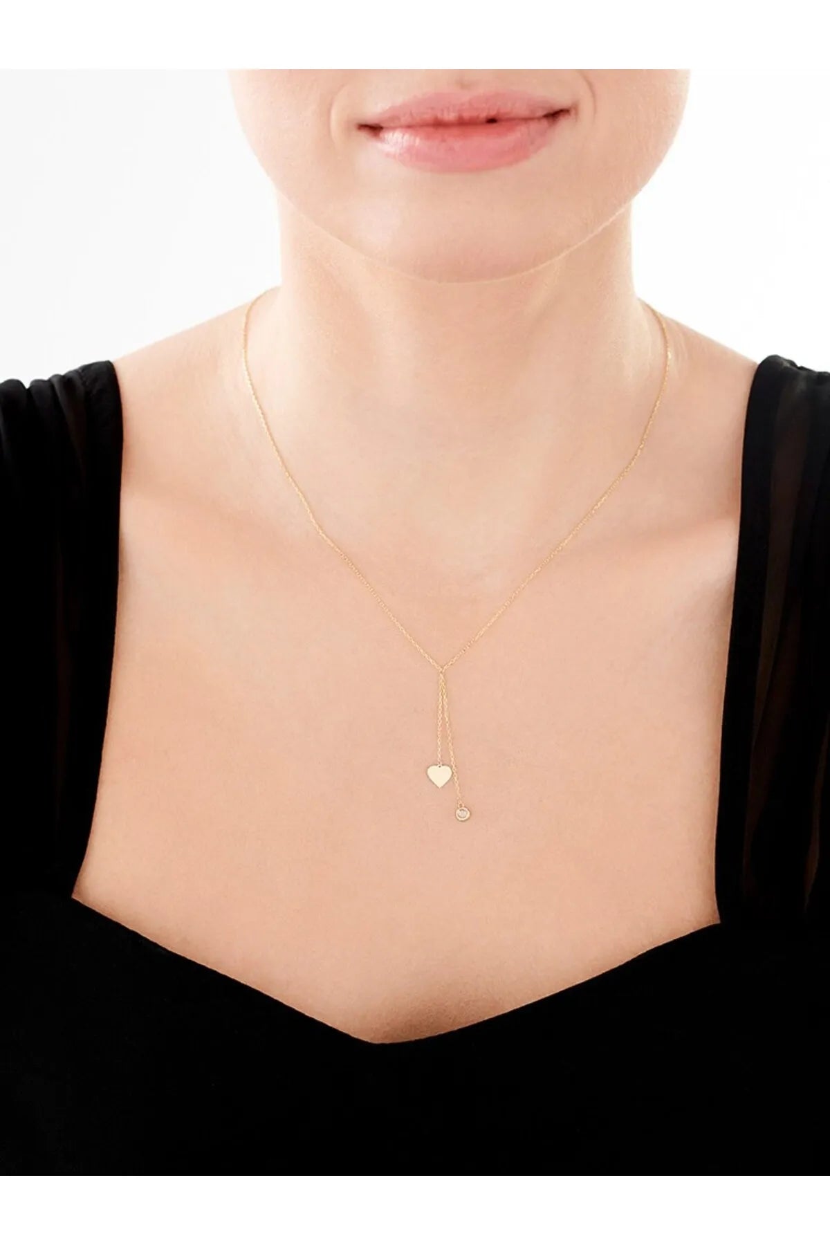 - 14 ayar sarı altın,sallantılı taşlı kalp kolye.