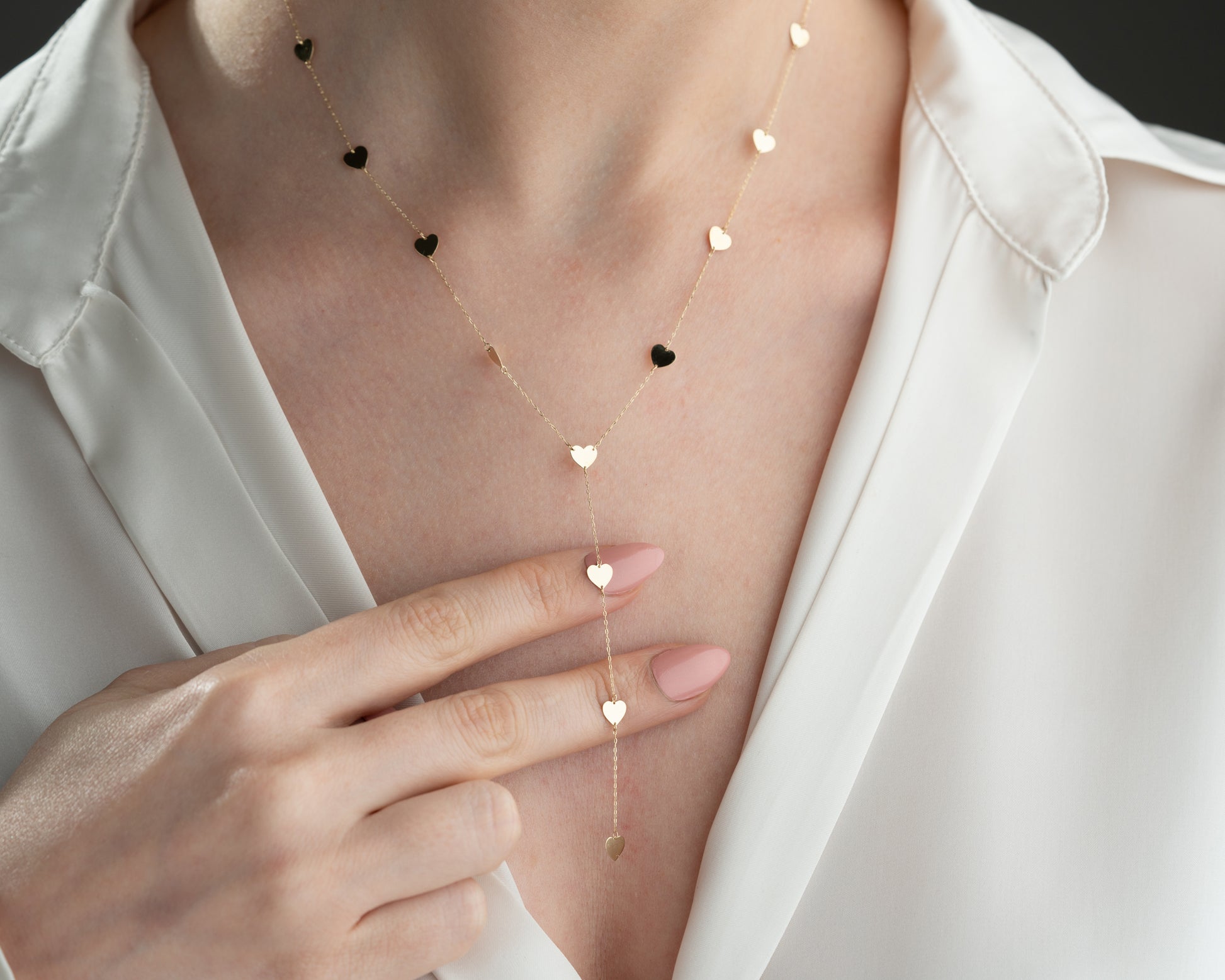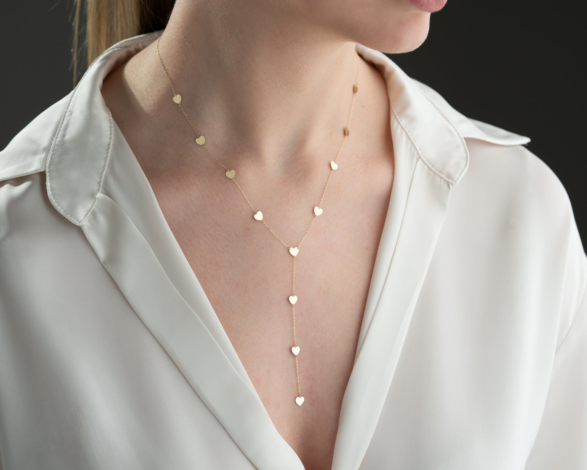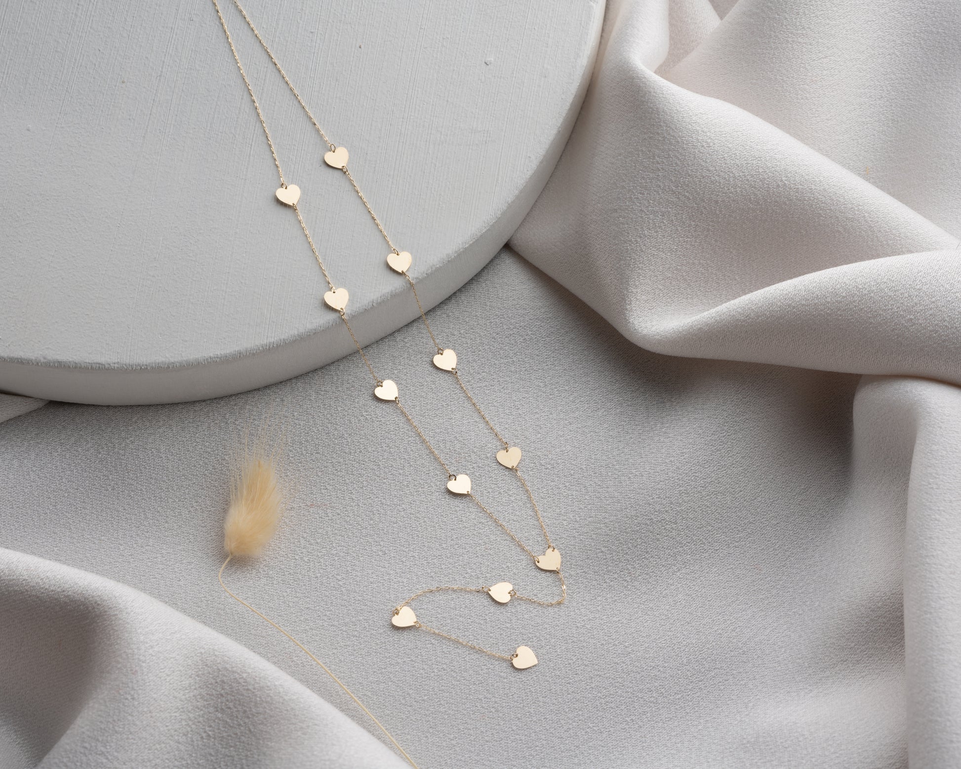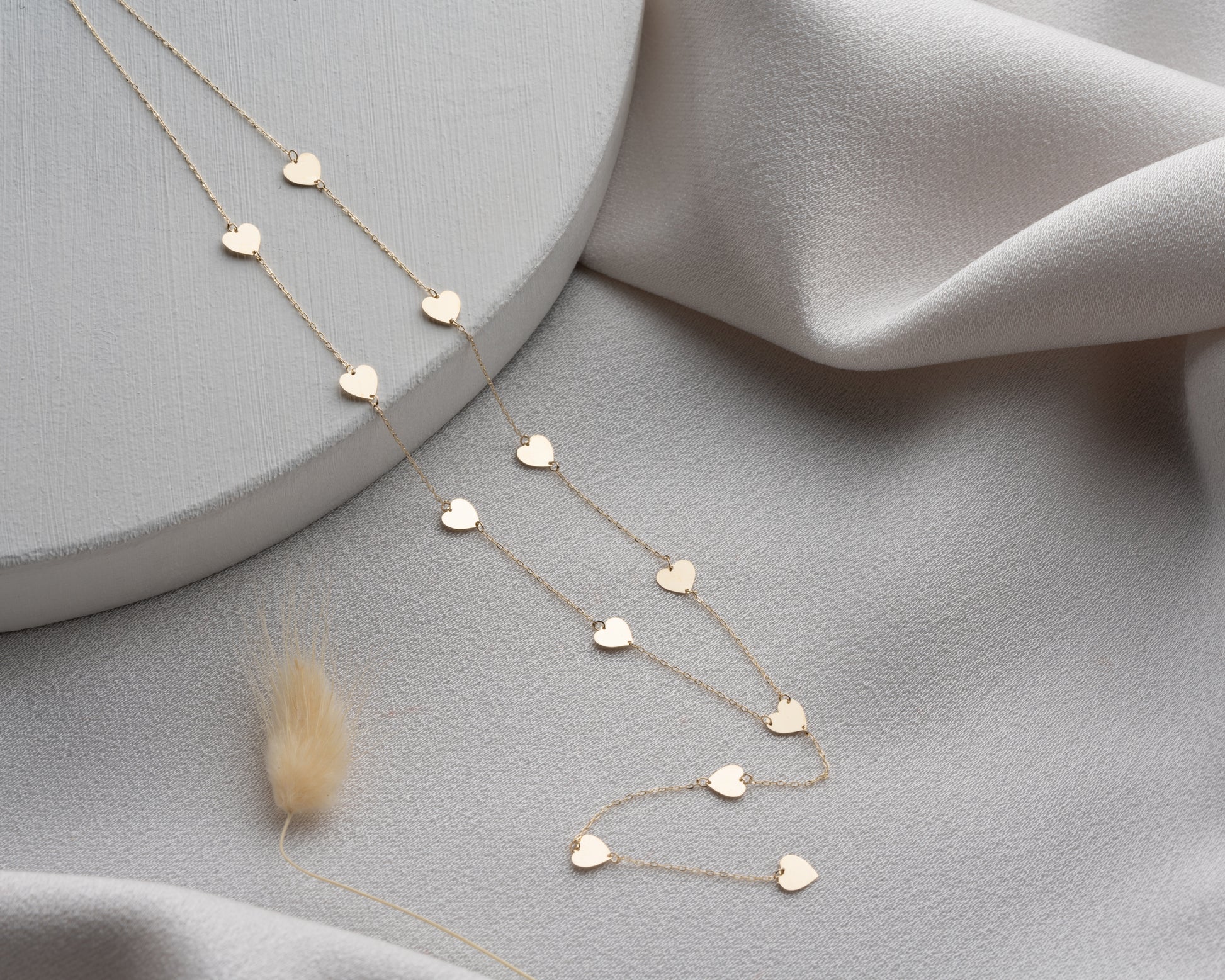 14 ayar sarı altın, 12 kalpli altın zincir
