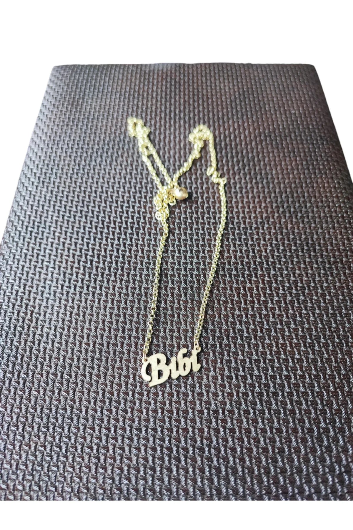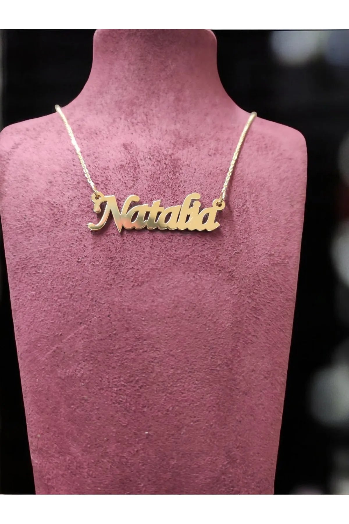 - 14 ayar sarı altın, kişiye Özel isim kolye İsim harf yüksekliği 1 cm genişlik fonta göre otomatik ayarlanmaktadir.