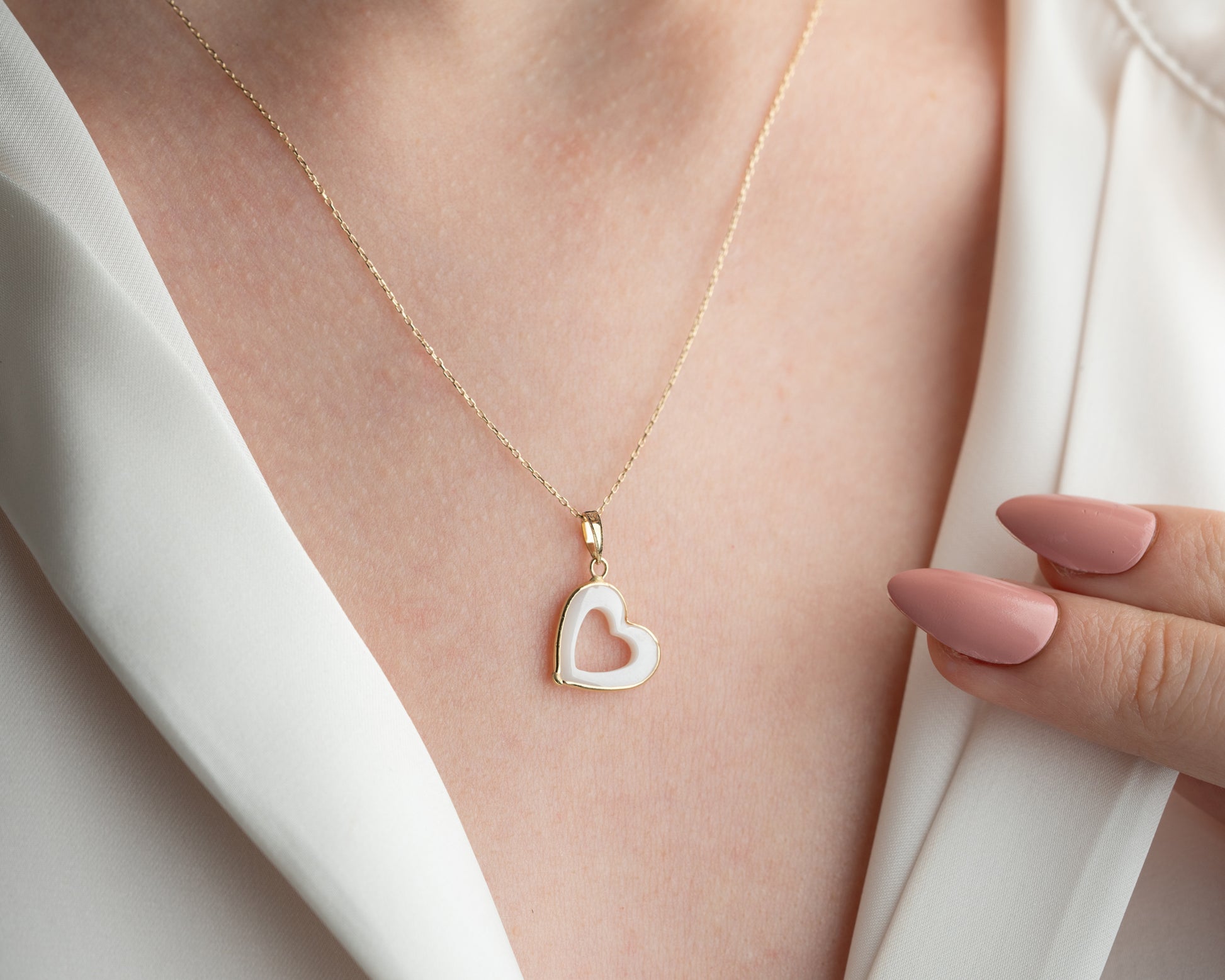 - 14 ayar sarı altın, Kalp taşlı altın kolye ucu