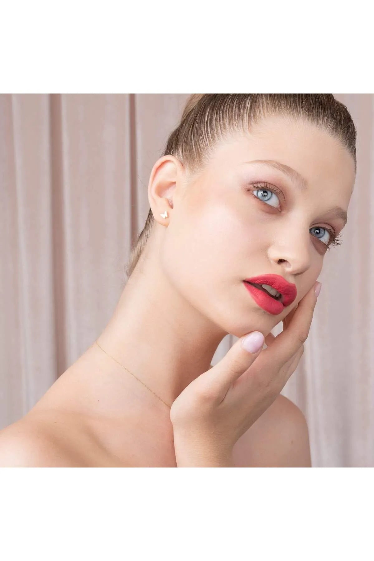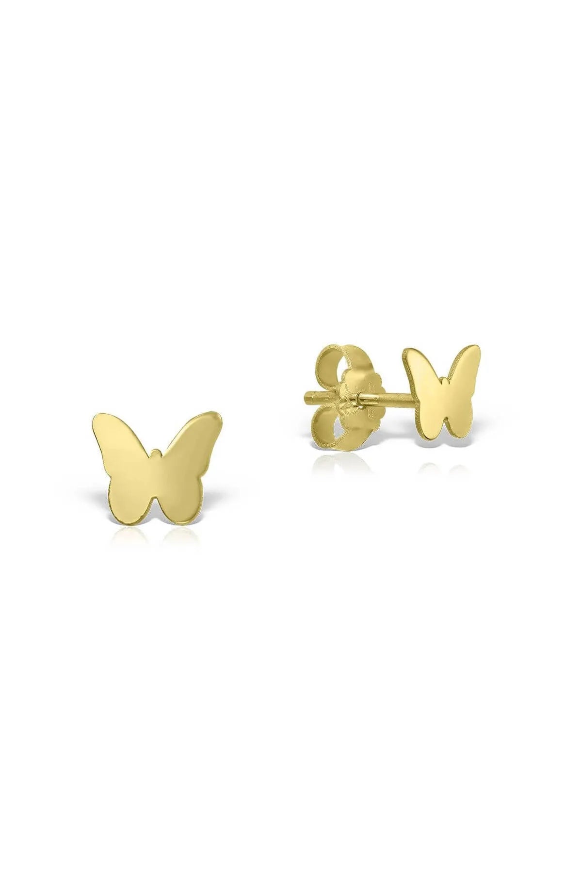 - 14 ayar sarı altın,kelebek detaylı pimli küpe ; Kelebek çapı: 5mm