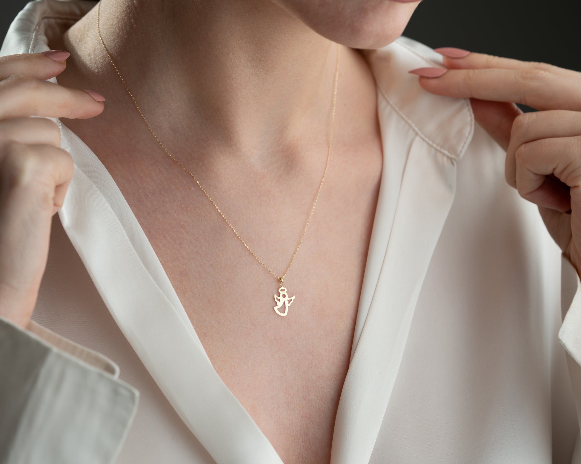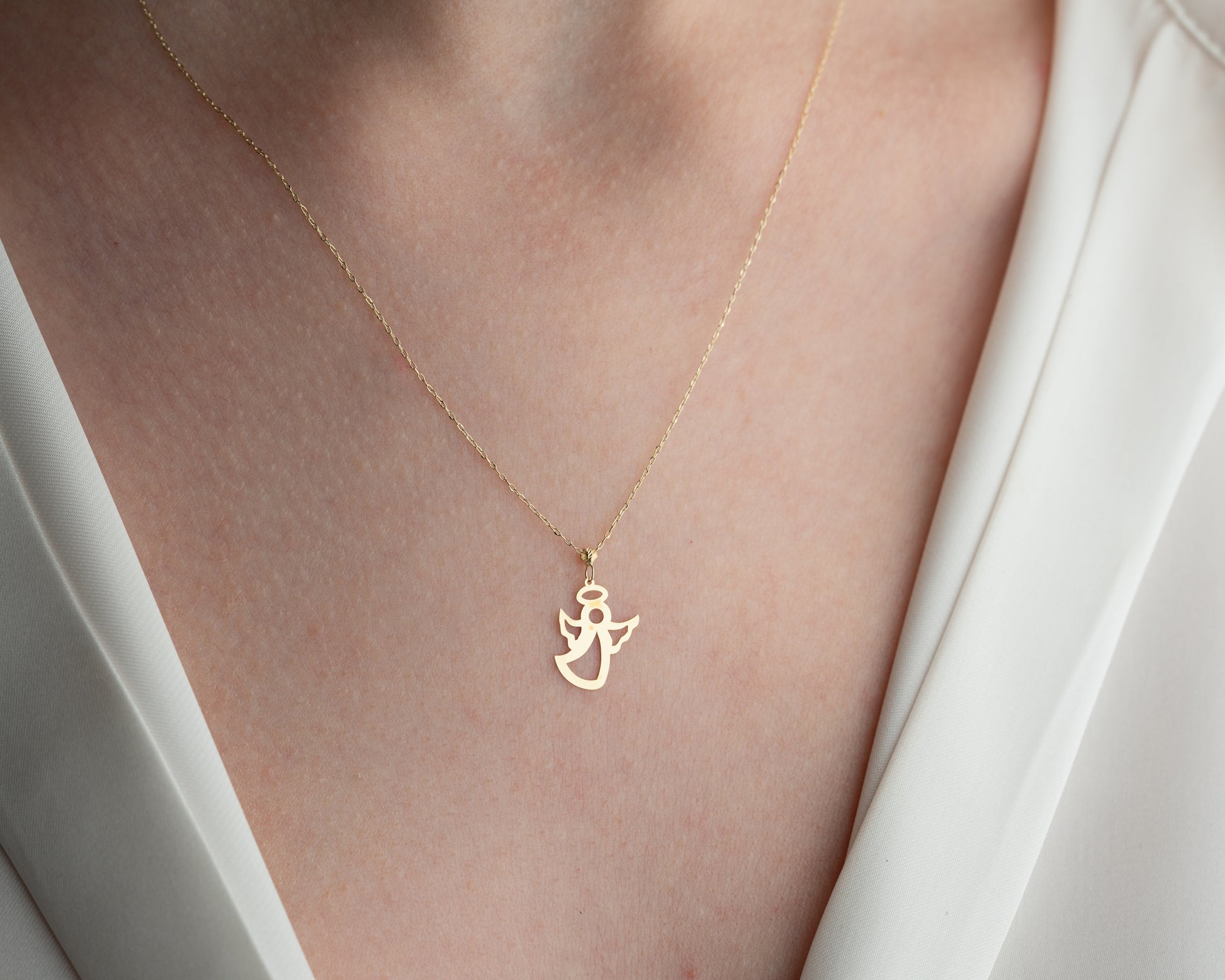 Melek Figürlü 14 Ayar Altın Kolye Minimal Altın Zincir