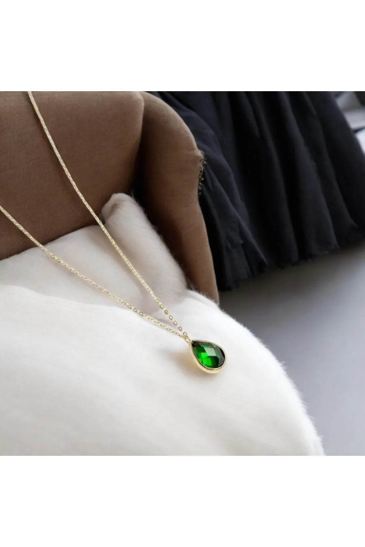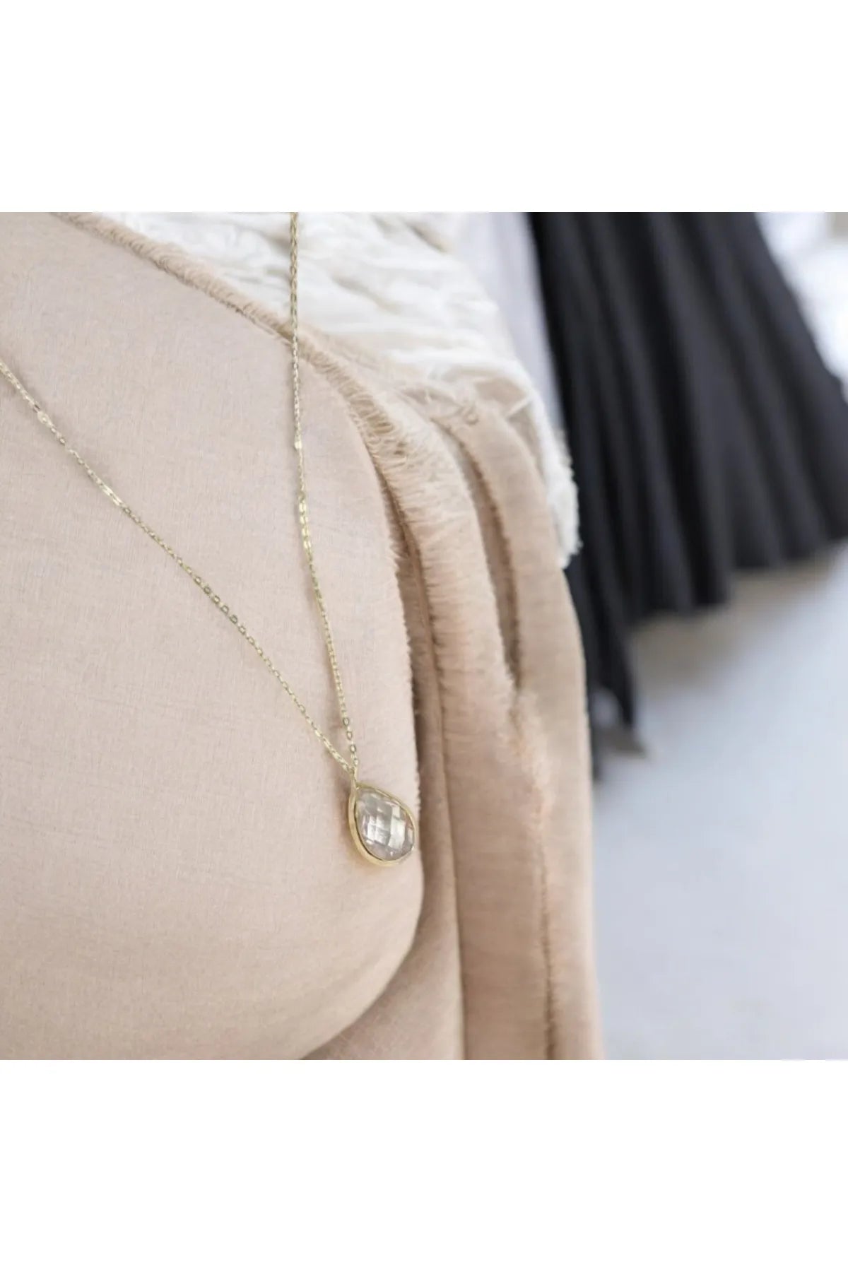 MİNİMAL Altın Doğal taşlı Damla kolye