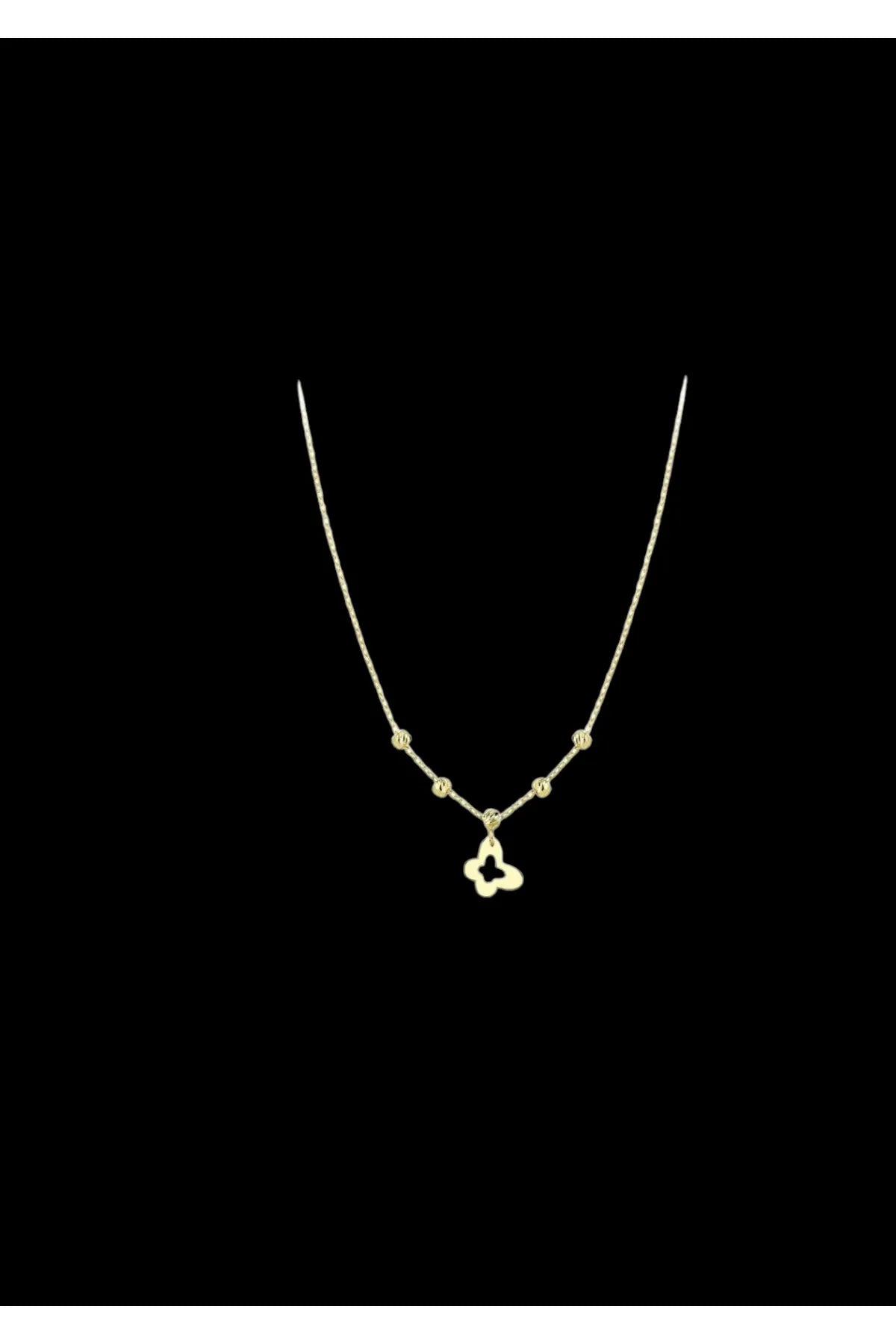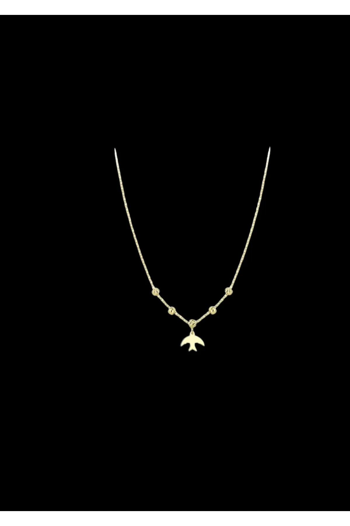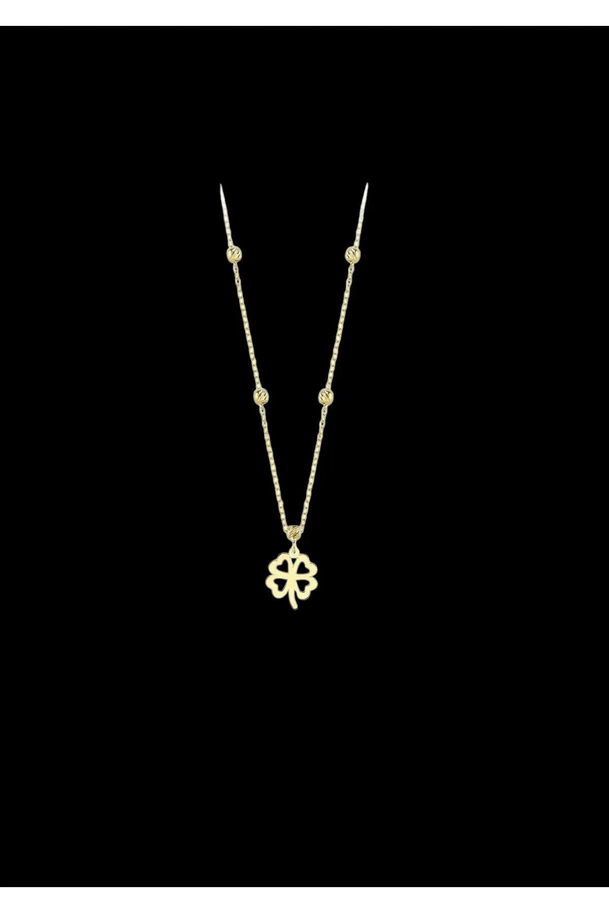 14 ayar sarı altın, 5 adet kalemli top ve altında sallanan figür astarlı kolye