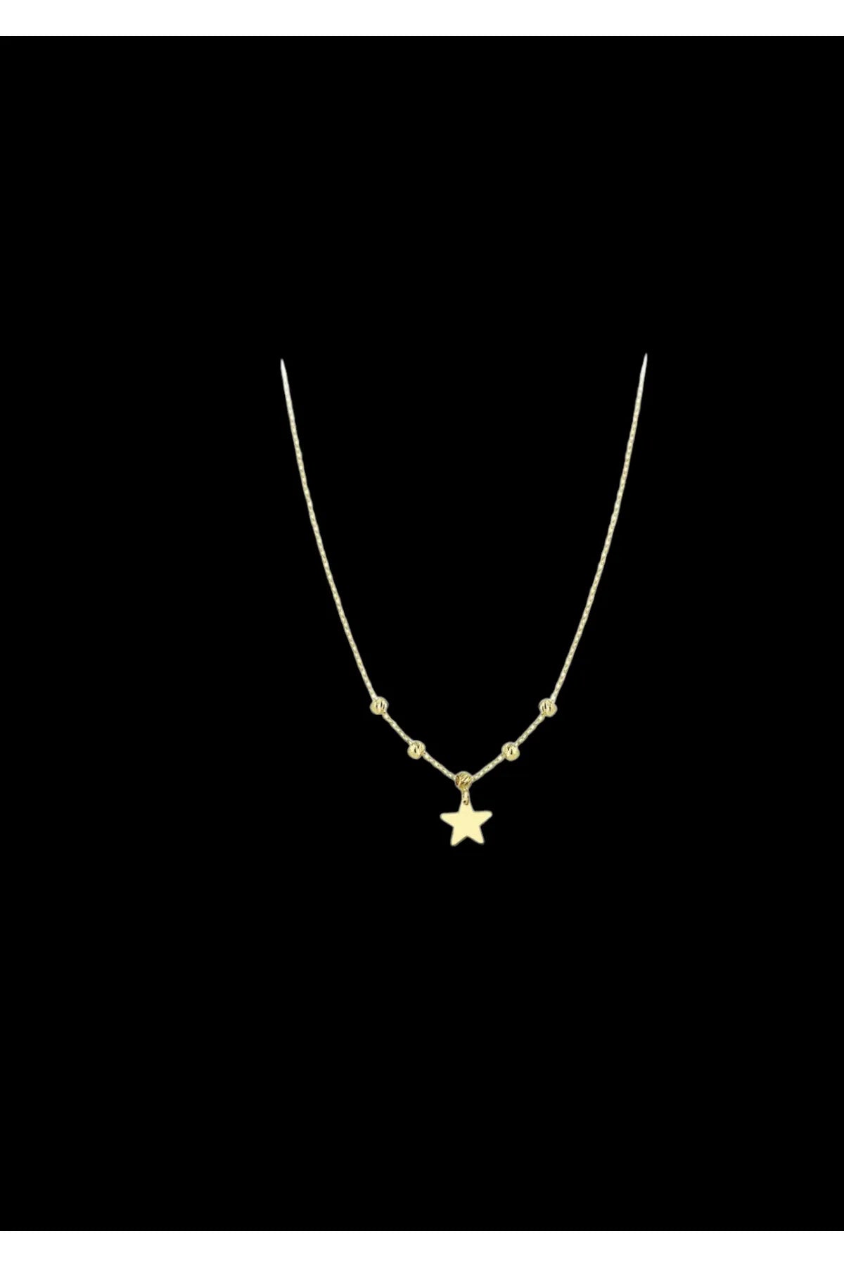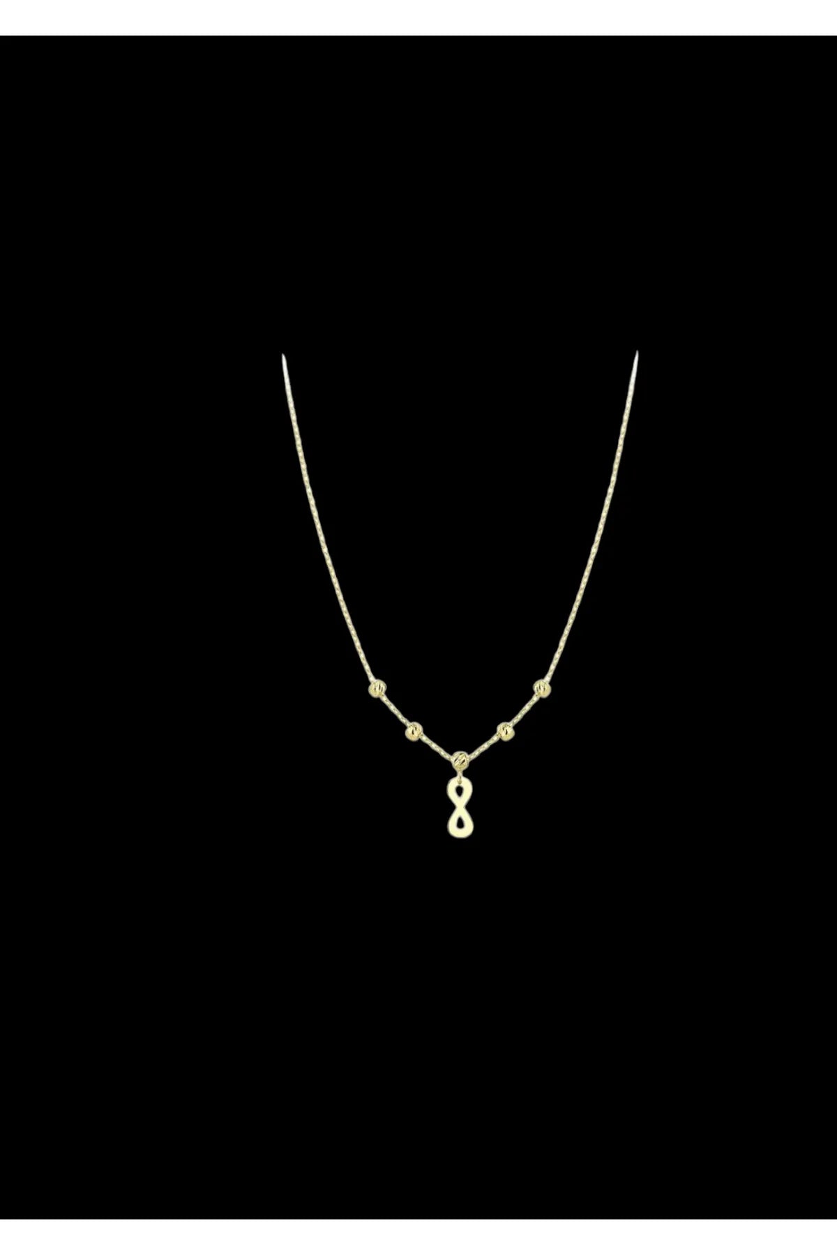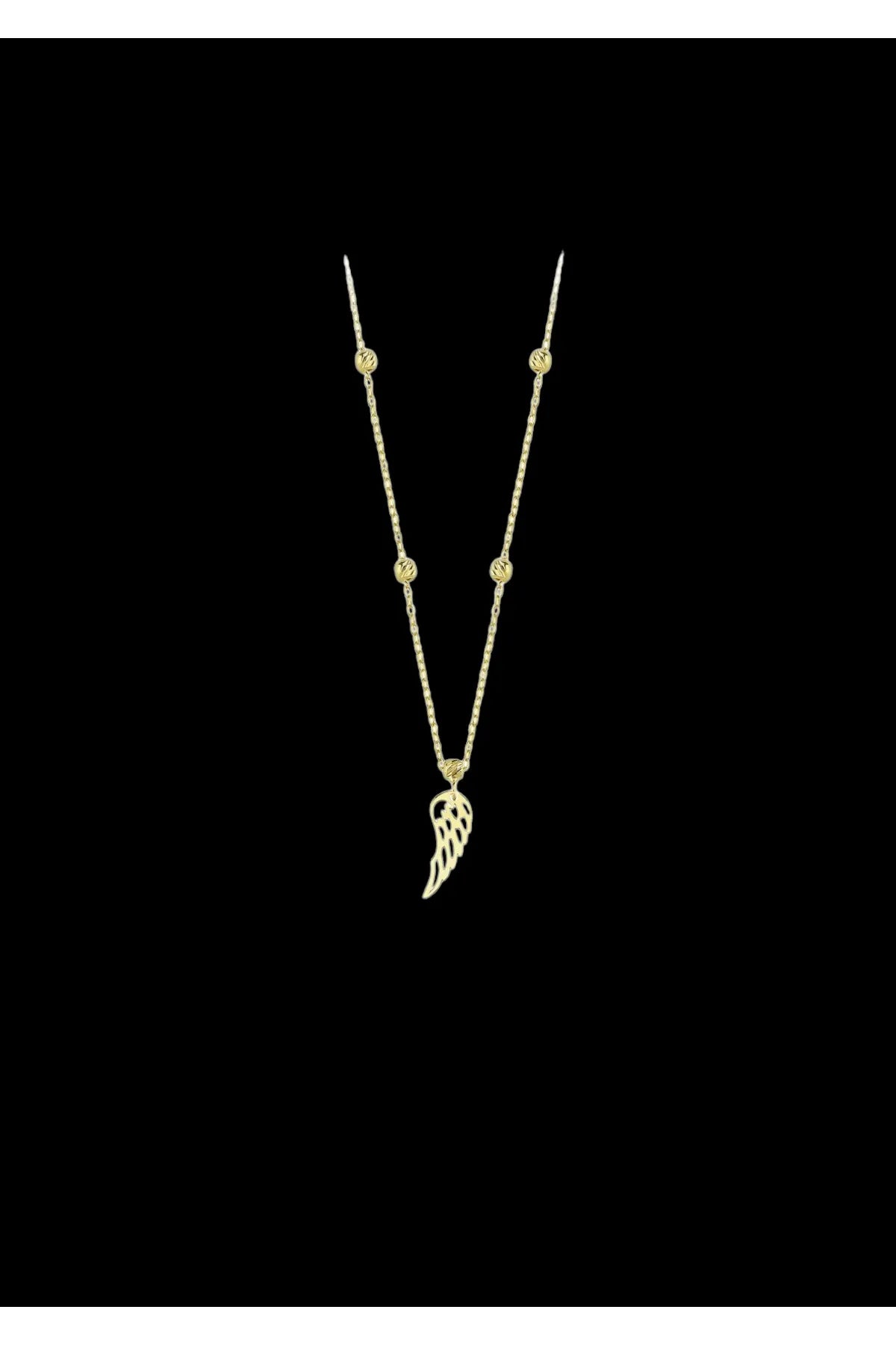 14 ayar sarı altın, 5 adet kalemli top ve altında sallanan figür astarlı kolye