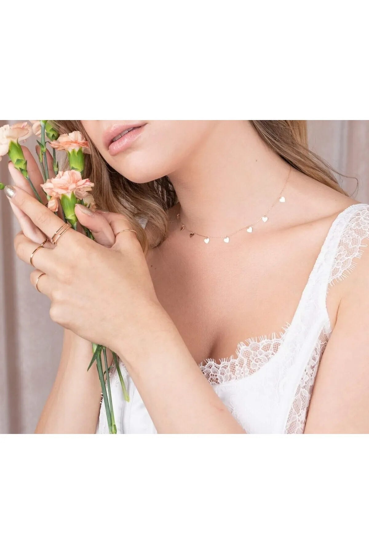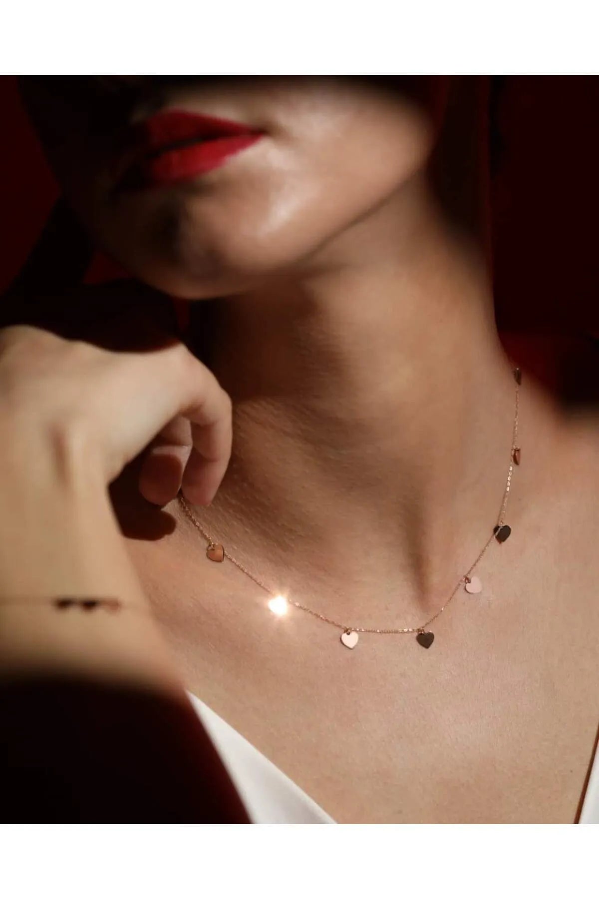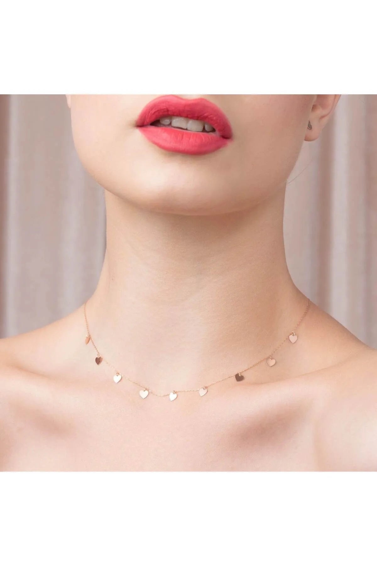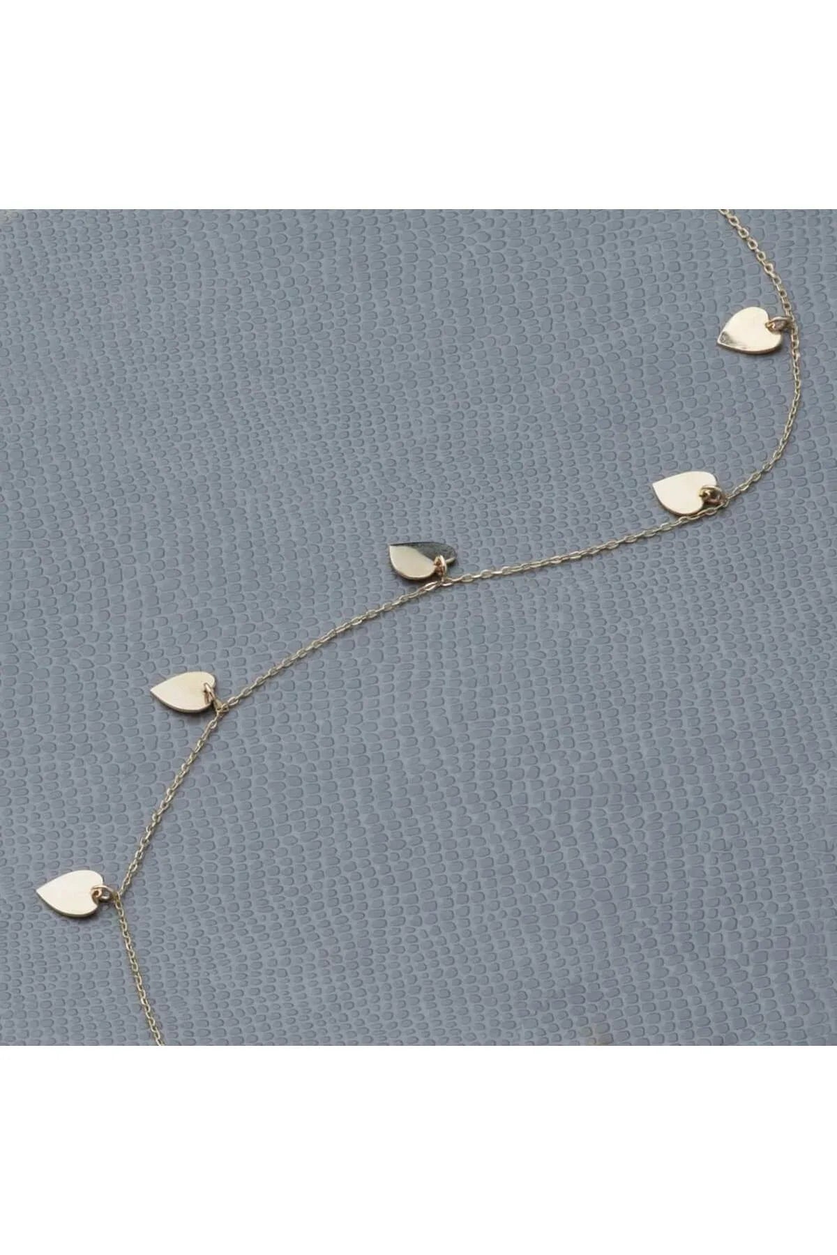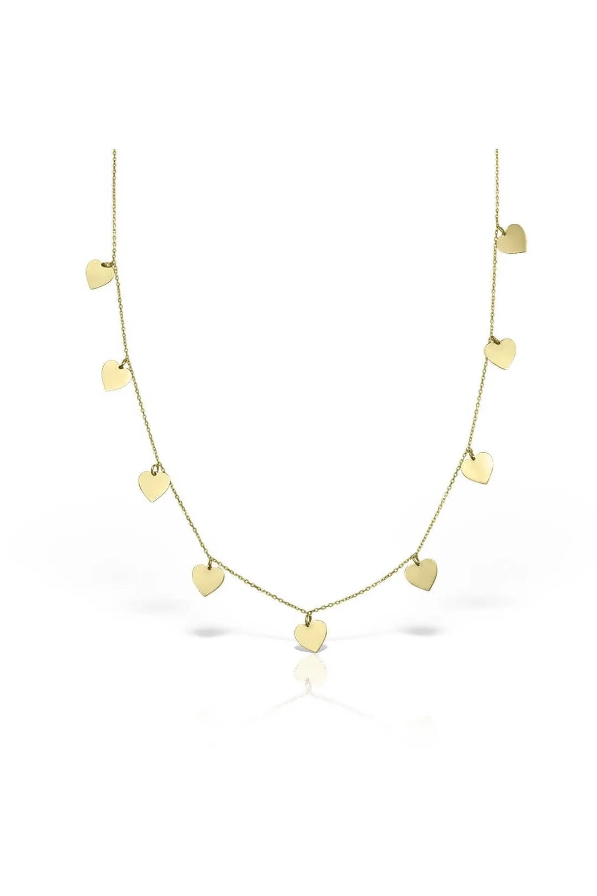 - 14 ayar sarı altın, 9 adet kalpli altın zincir kolye