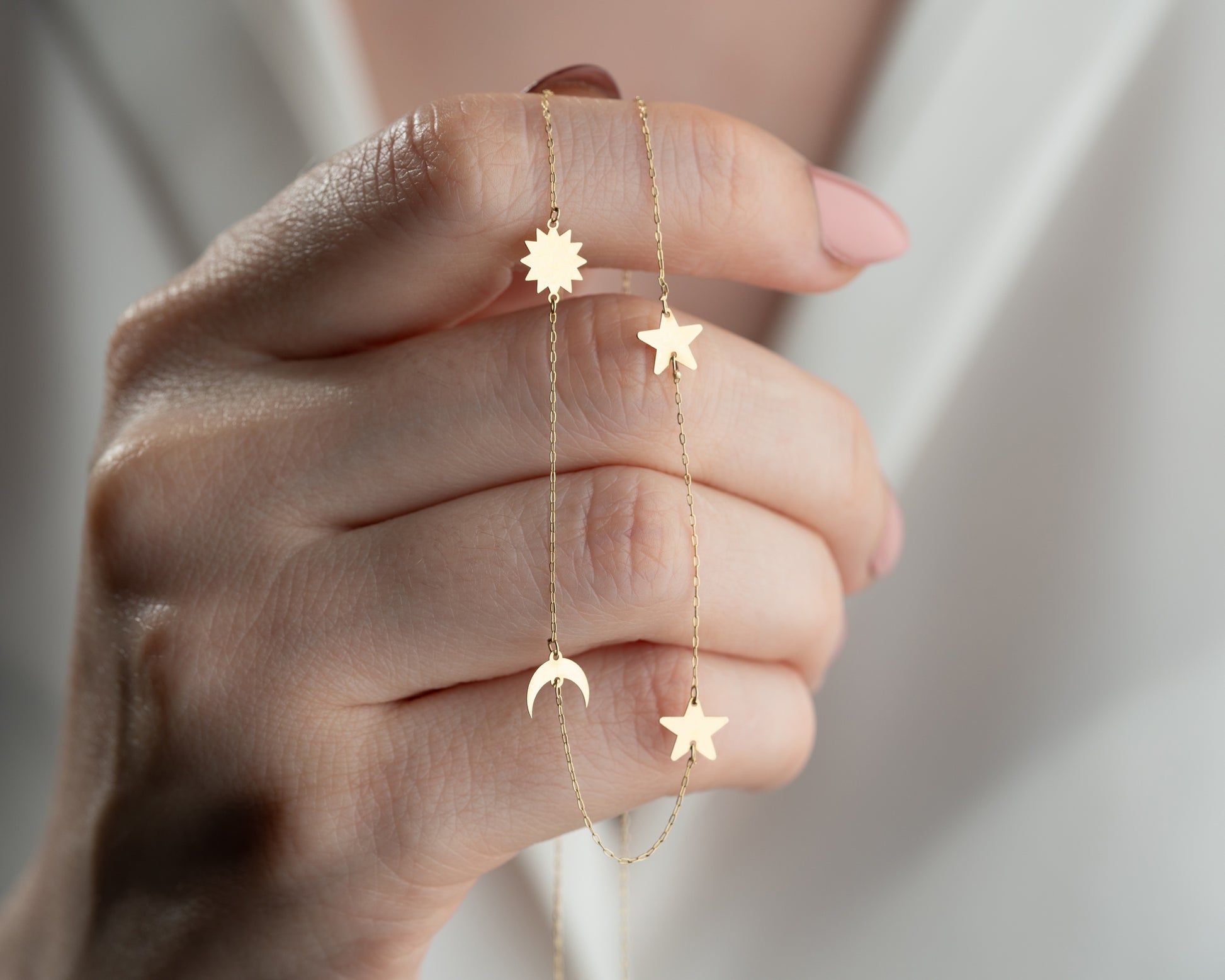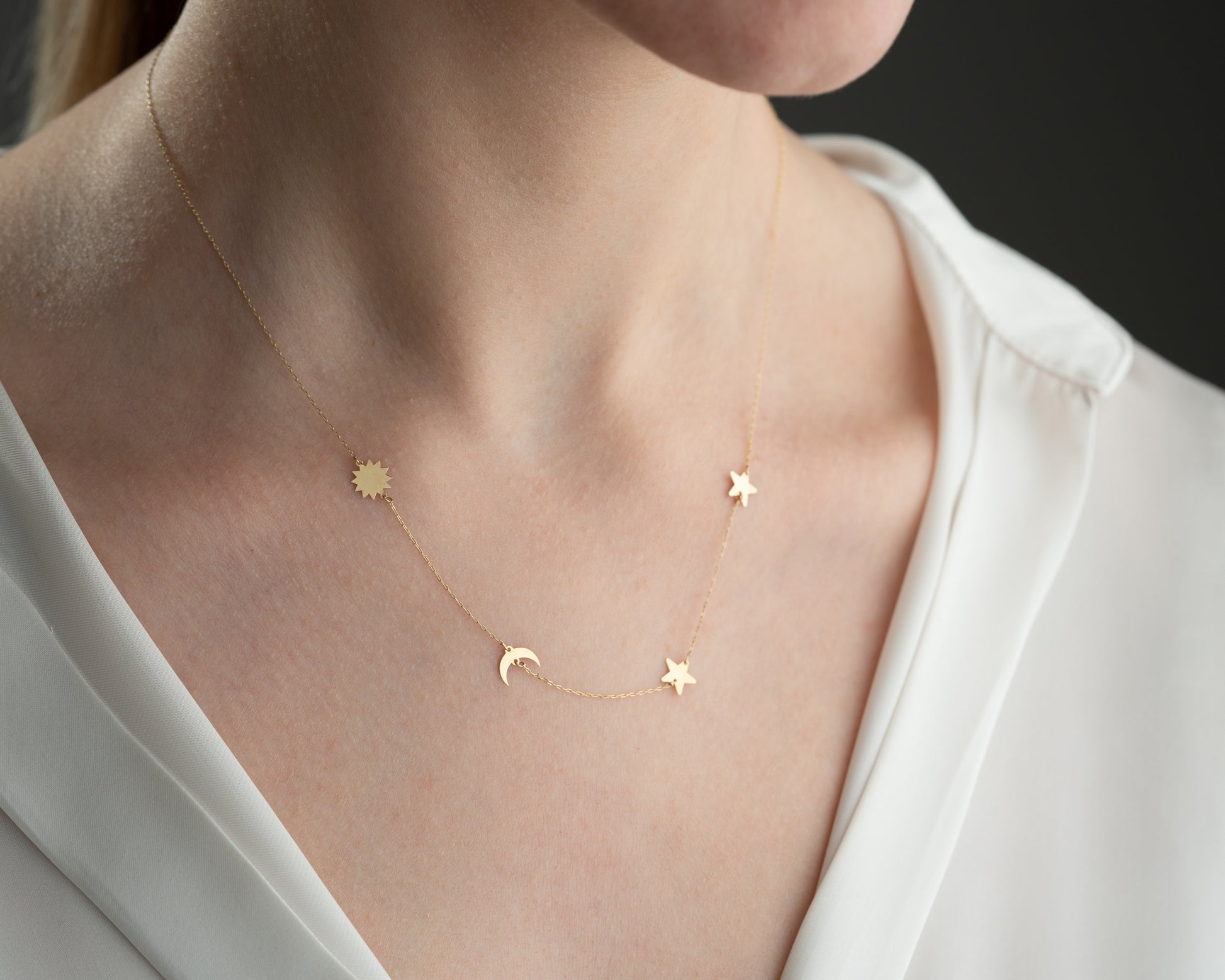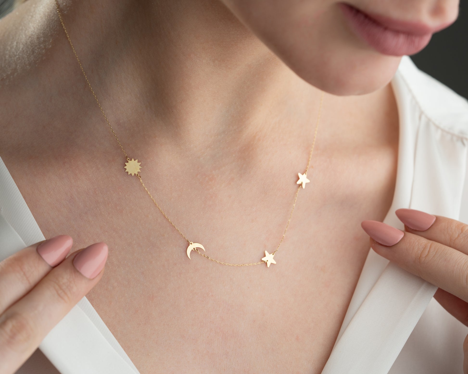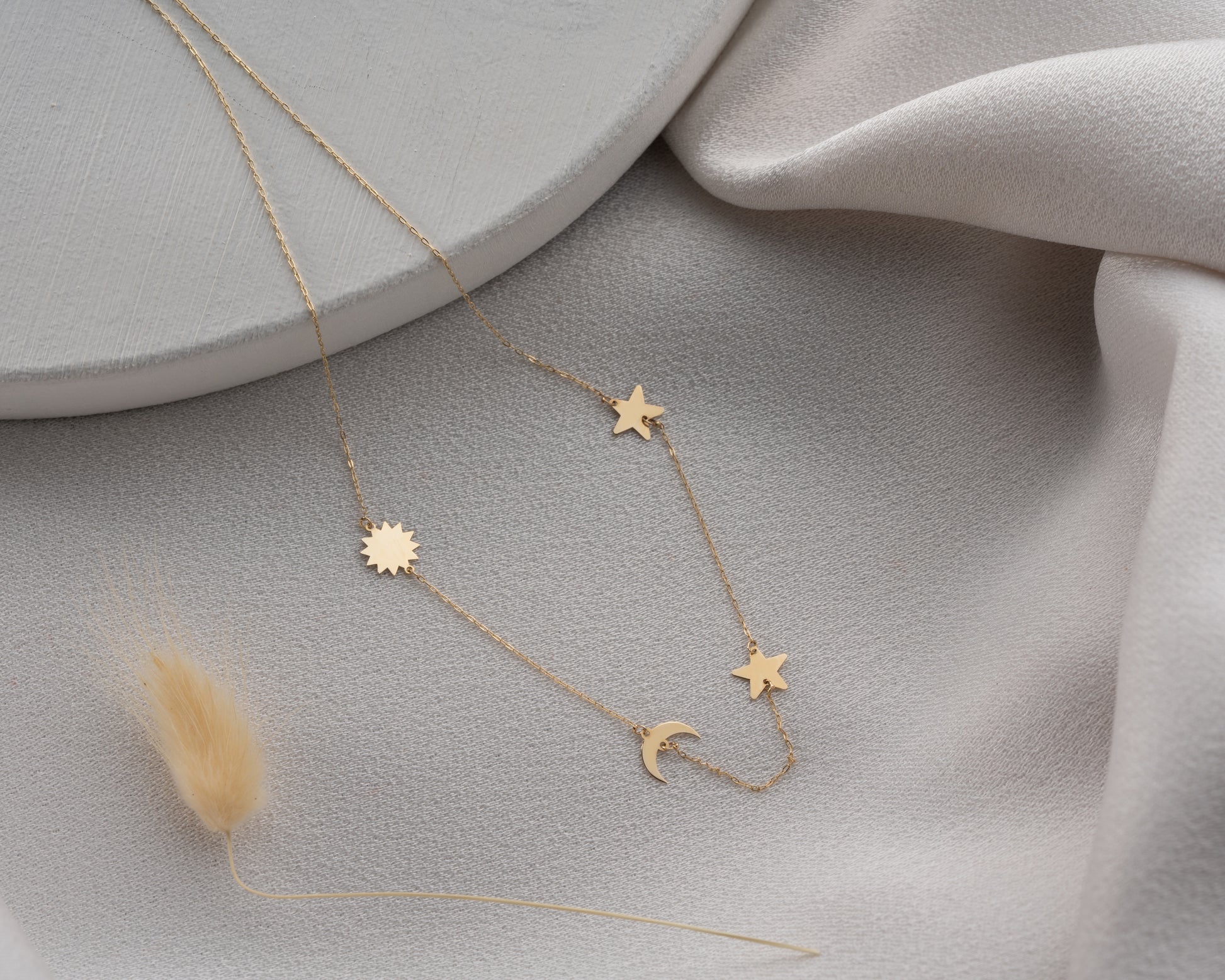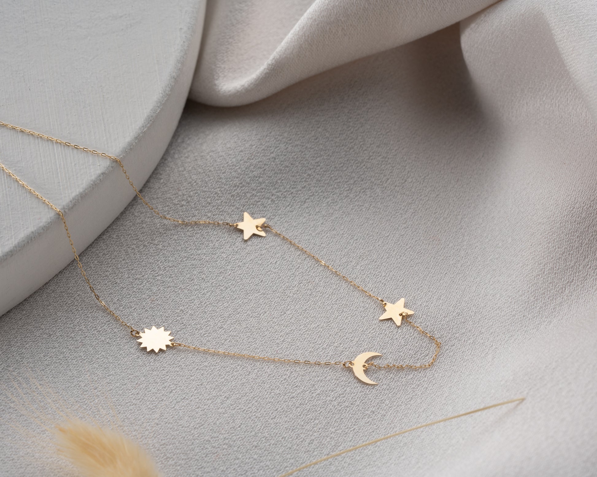 Minimal Kolye Altın Ay yıldız güneş galaxy kolye