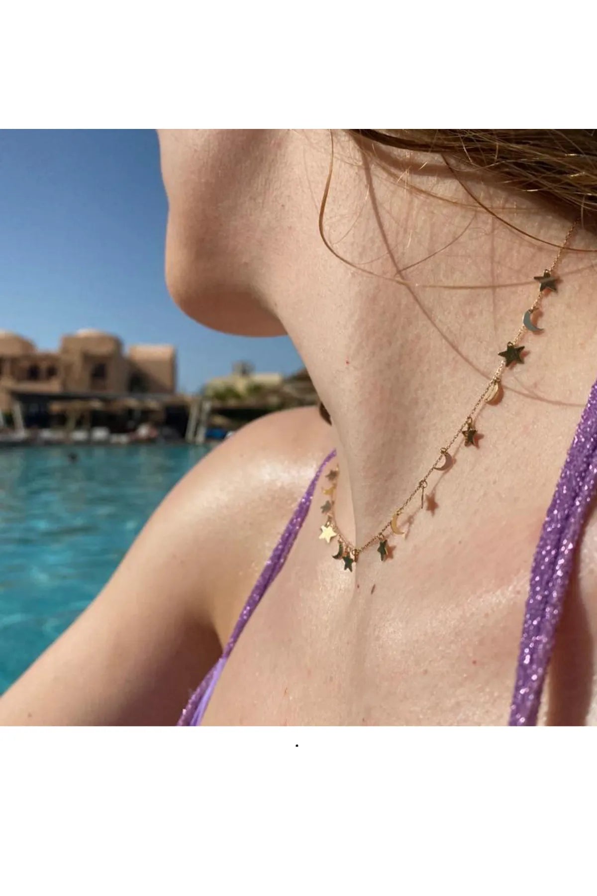Minimal Kolye Altin Ay Yıldız Kolye "Melia"