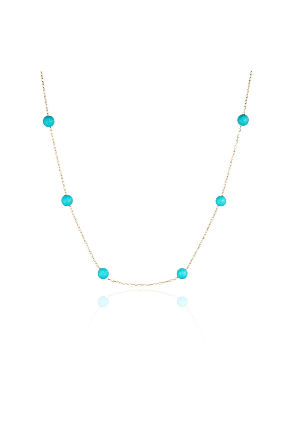 - 14 ayar sarı altın,15 adet firuze taşlı altın zincir kolye
