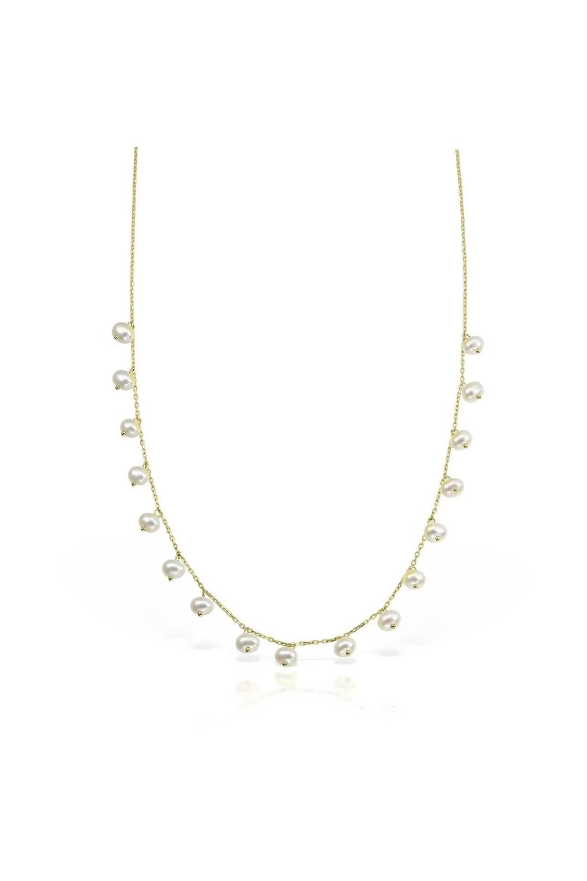 - 14 ayar sarı altın 17 adet incili altın zincir kolye