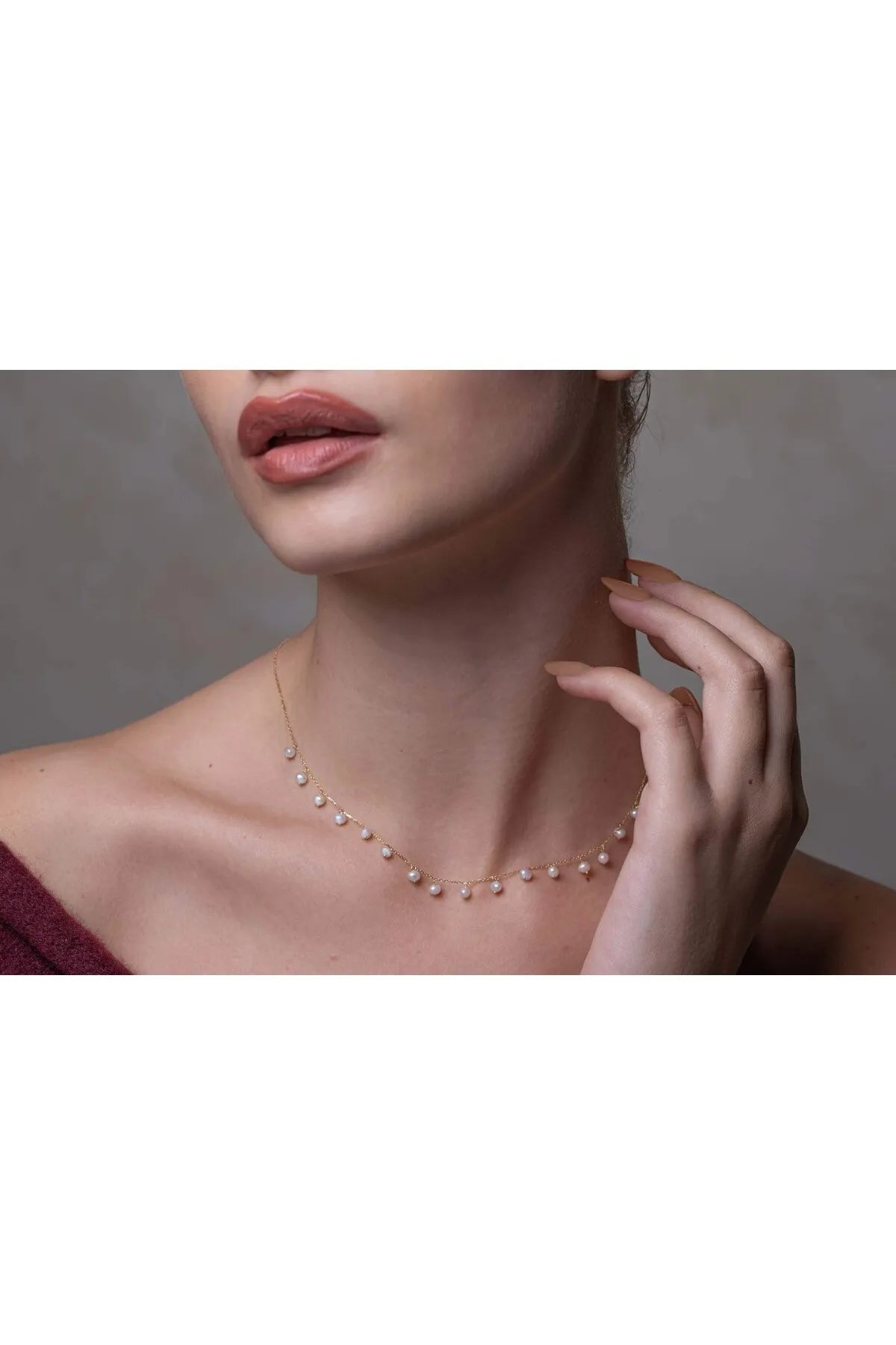 Minimal Kolye Altin Incili Zincir Kolye "isabele"