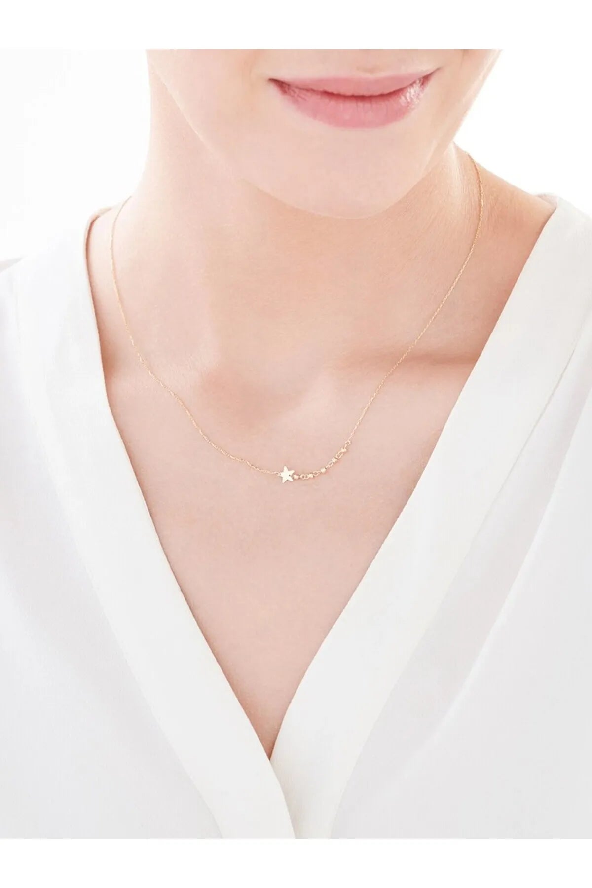 Minimal kolye ALTIN Kalemli top ve yıldız zincir kolye "Star-D"