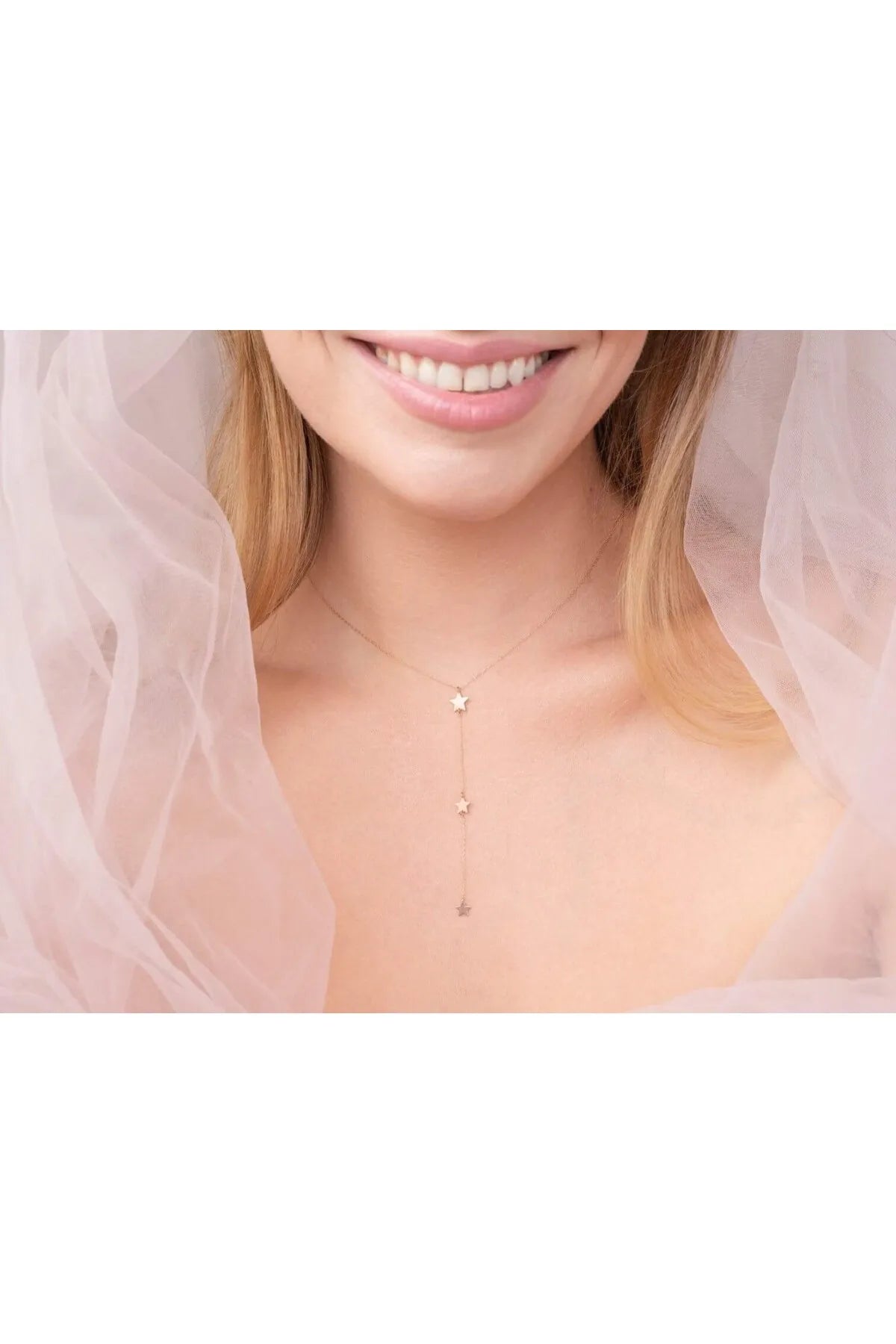 - 14 ayar sarı altın, yıldız lı altın zincir kolye