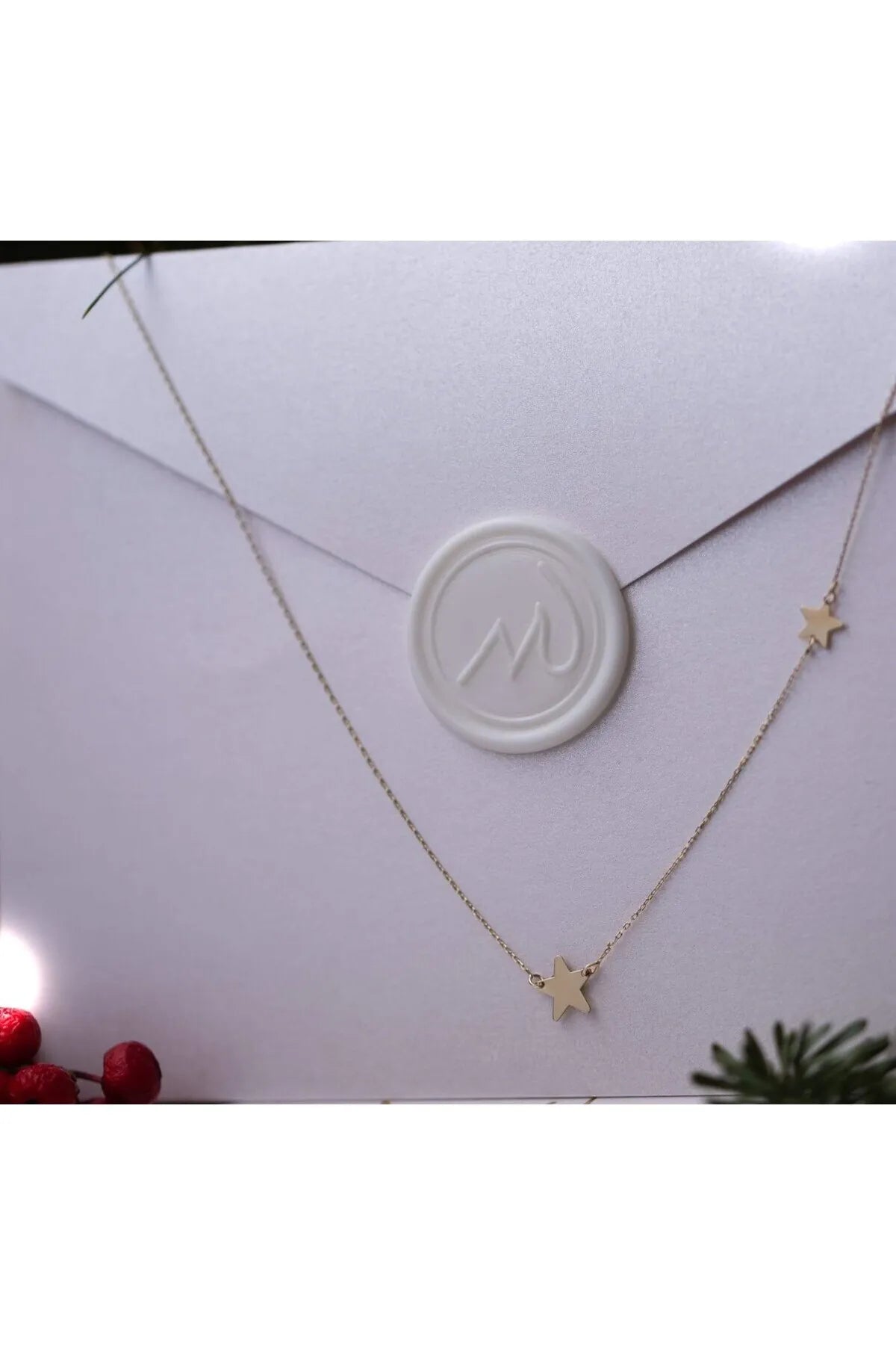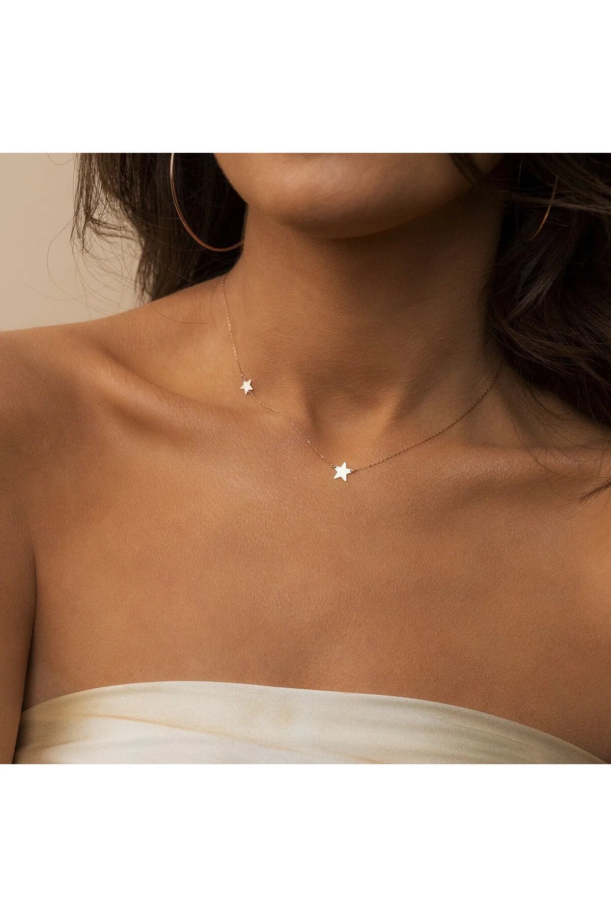 - 14 ayar sarı altın,2 yıldızlı altın zincir kolye