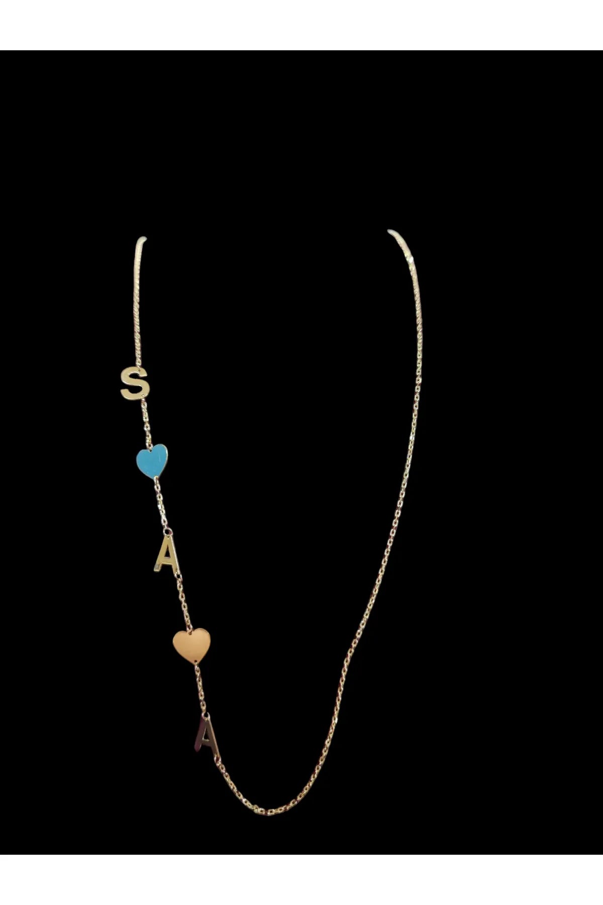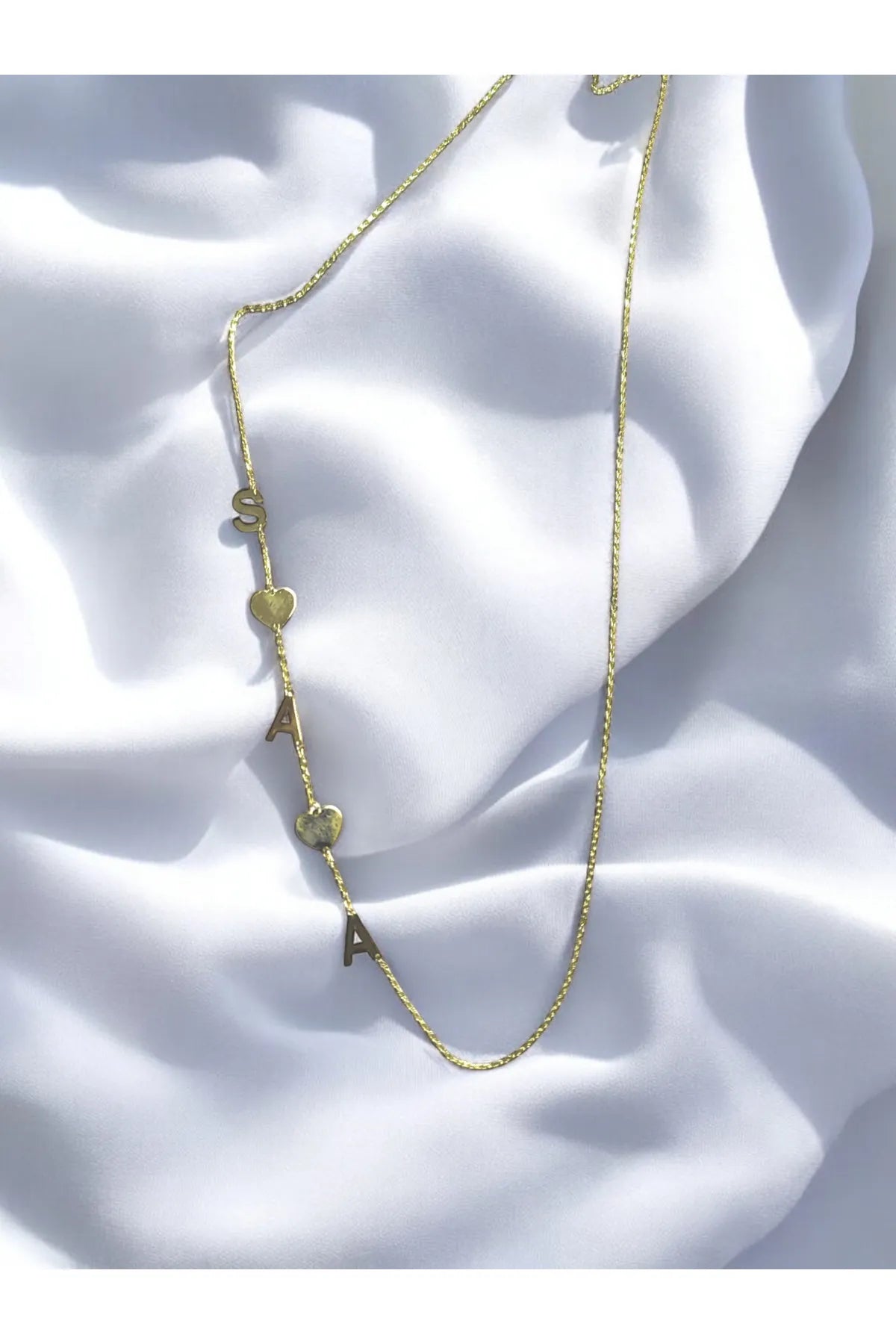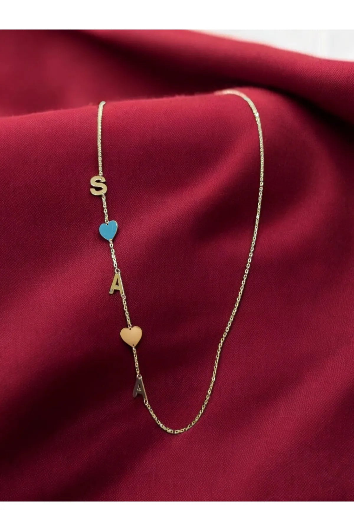 - 14 ayar sarı altın, kişiye Özel kalpli harf kolye 3 harfli