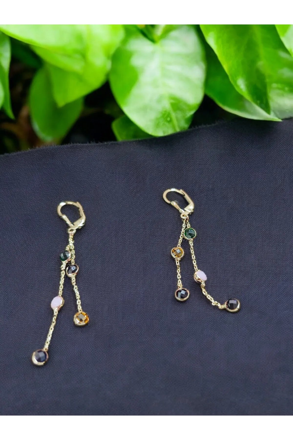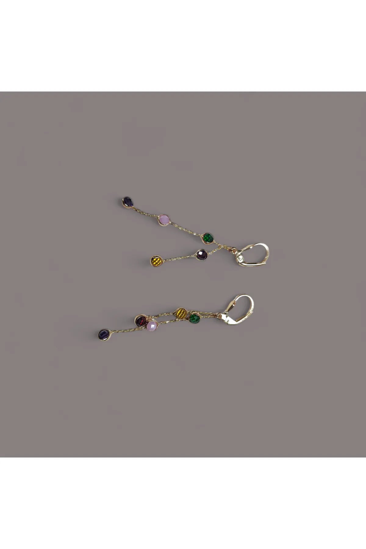 - 14 ayar sarı altın,loverback altında sallanan renkli taşlı küpe