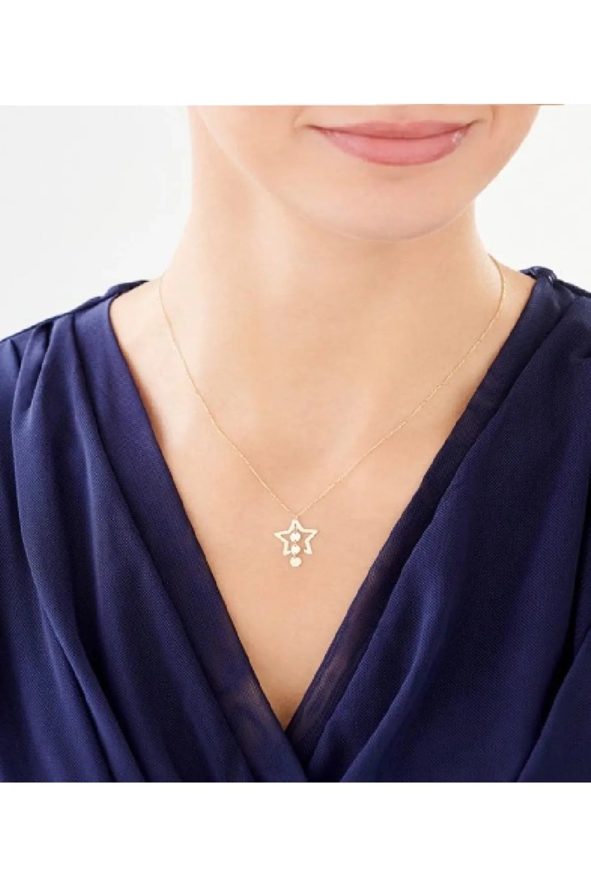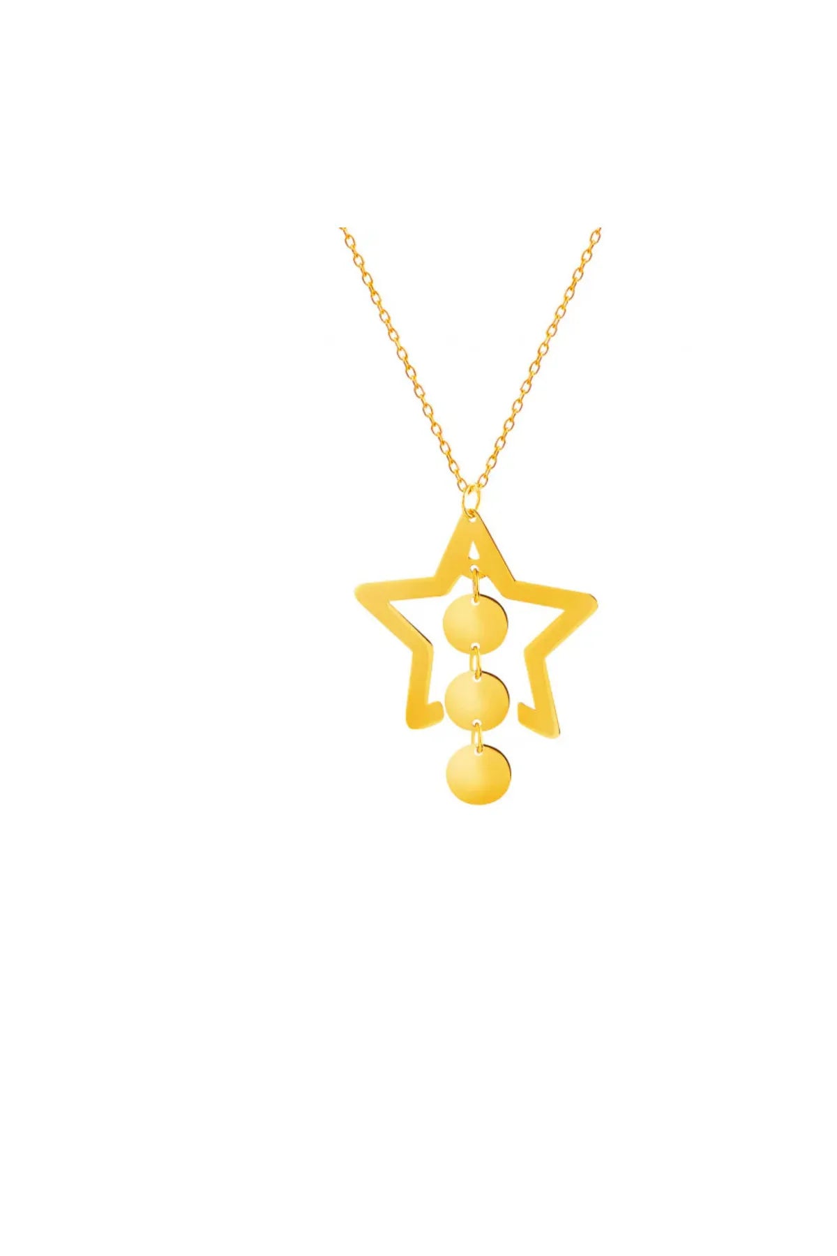 14 ayar sarı altın,plakalı yıldız kolye plaka boyu 5 mm yıldız 15mm (toplam segmen uzunluğu 19mm)