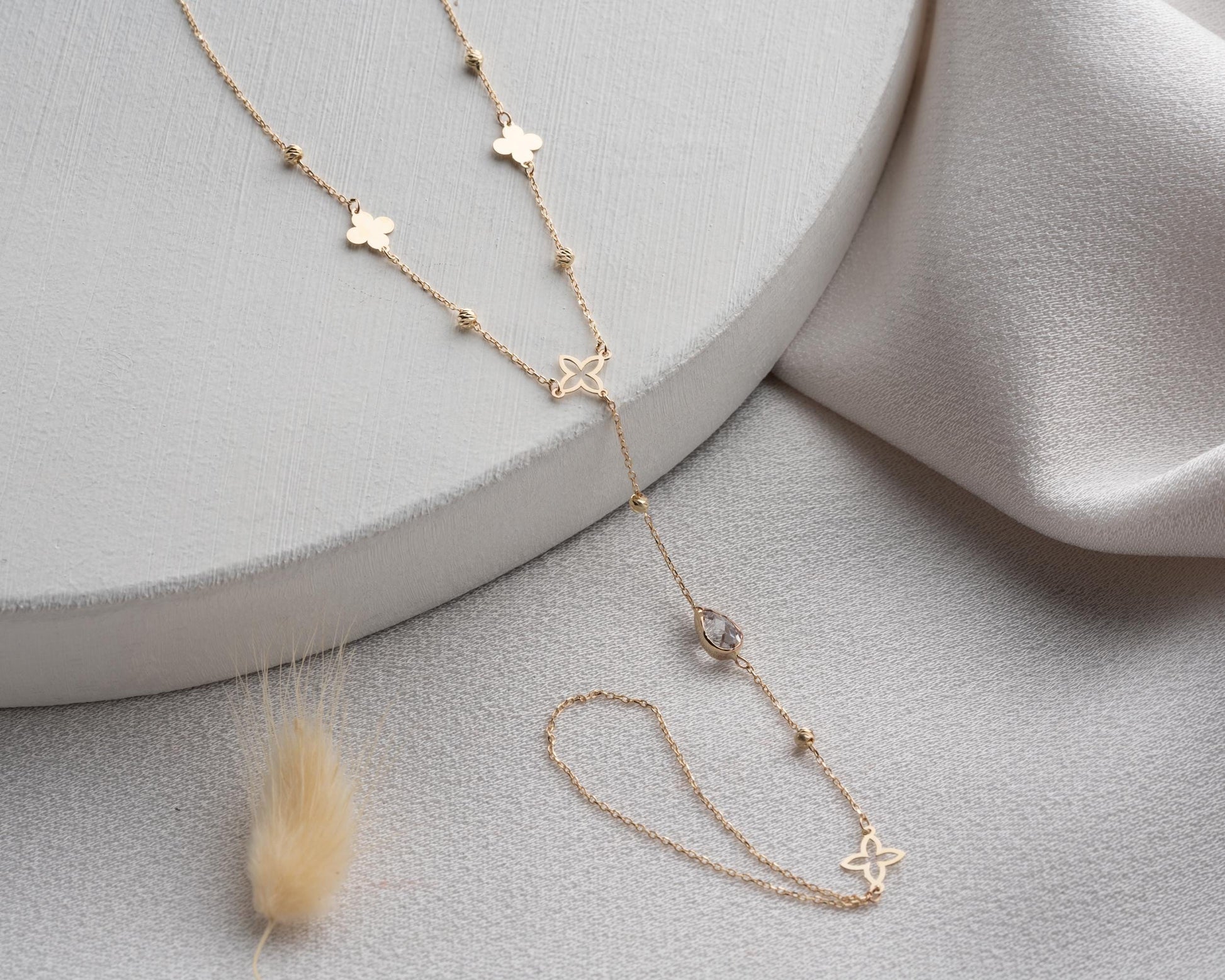 14 Ayar Altın Şahmeran Bileklik – Zarif Çiçekli Ve Zirkon Taşlı Model