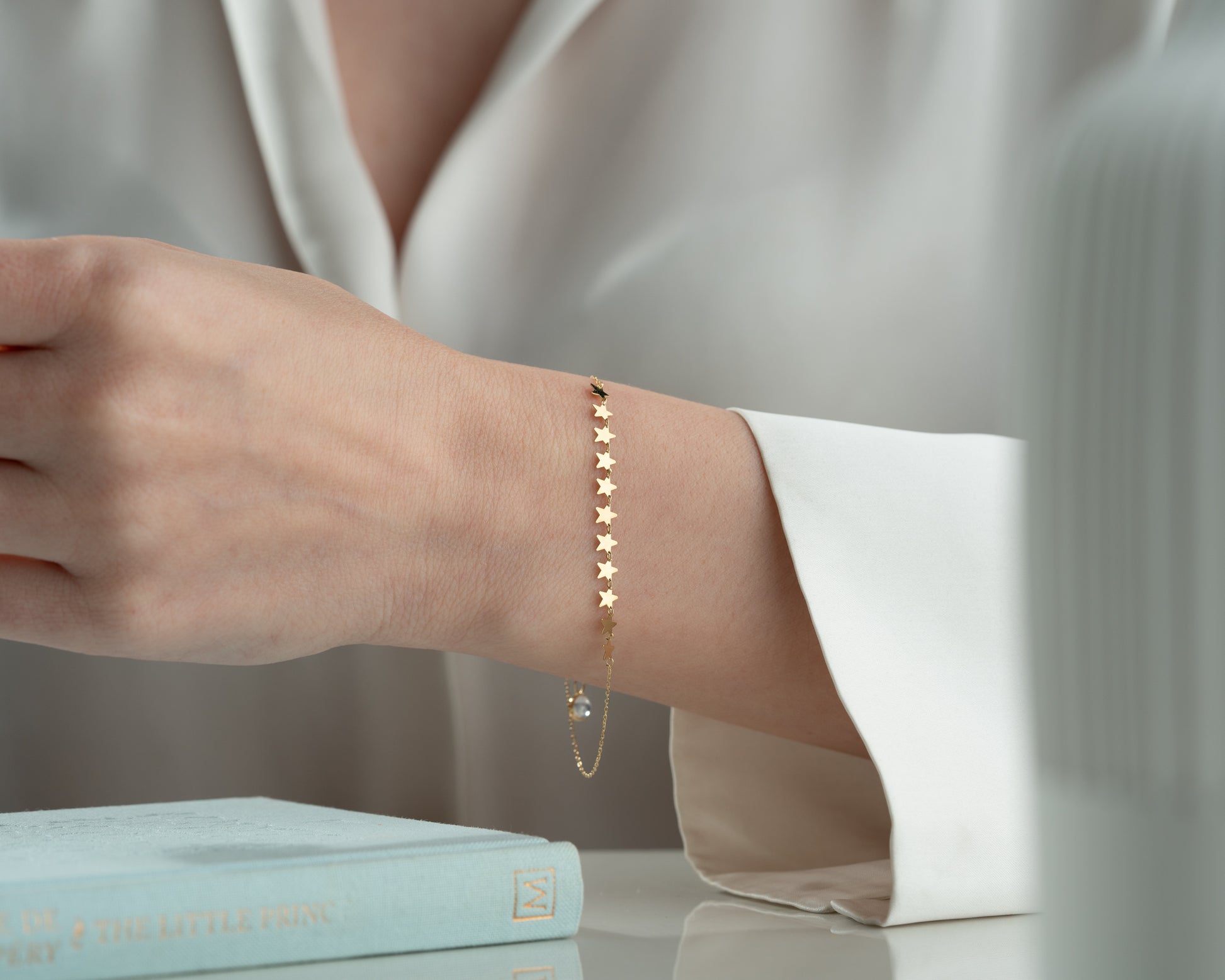 Minimal kolye yıldız sıralı bileklik "Stella-F"